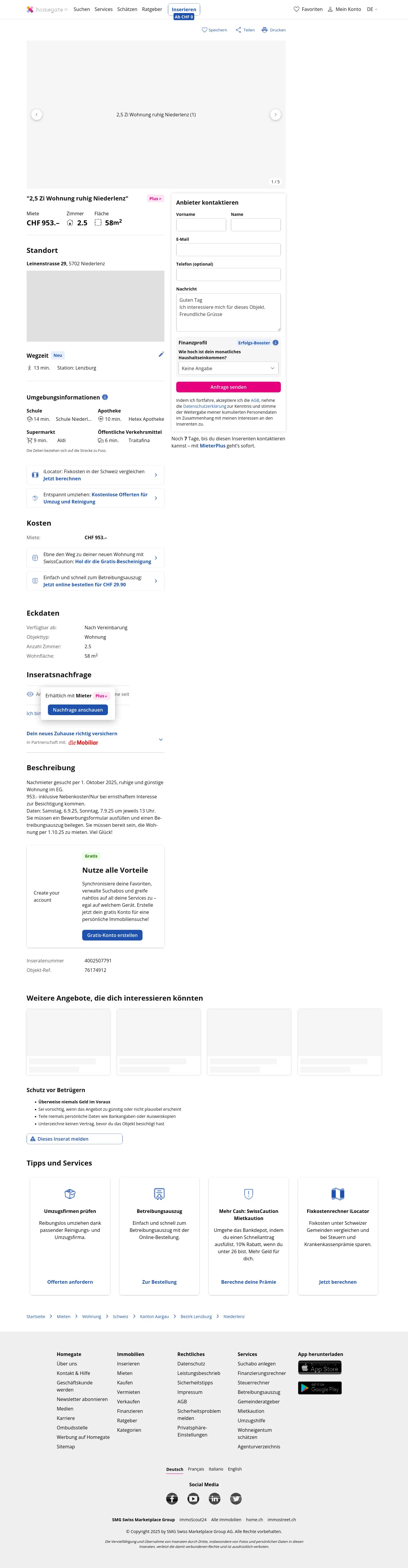 | Miete | CHF 953 /Mo |