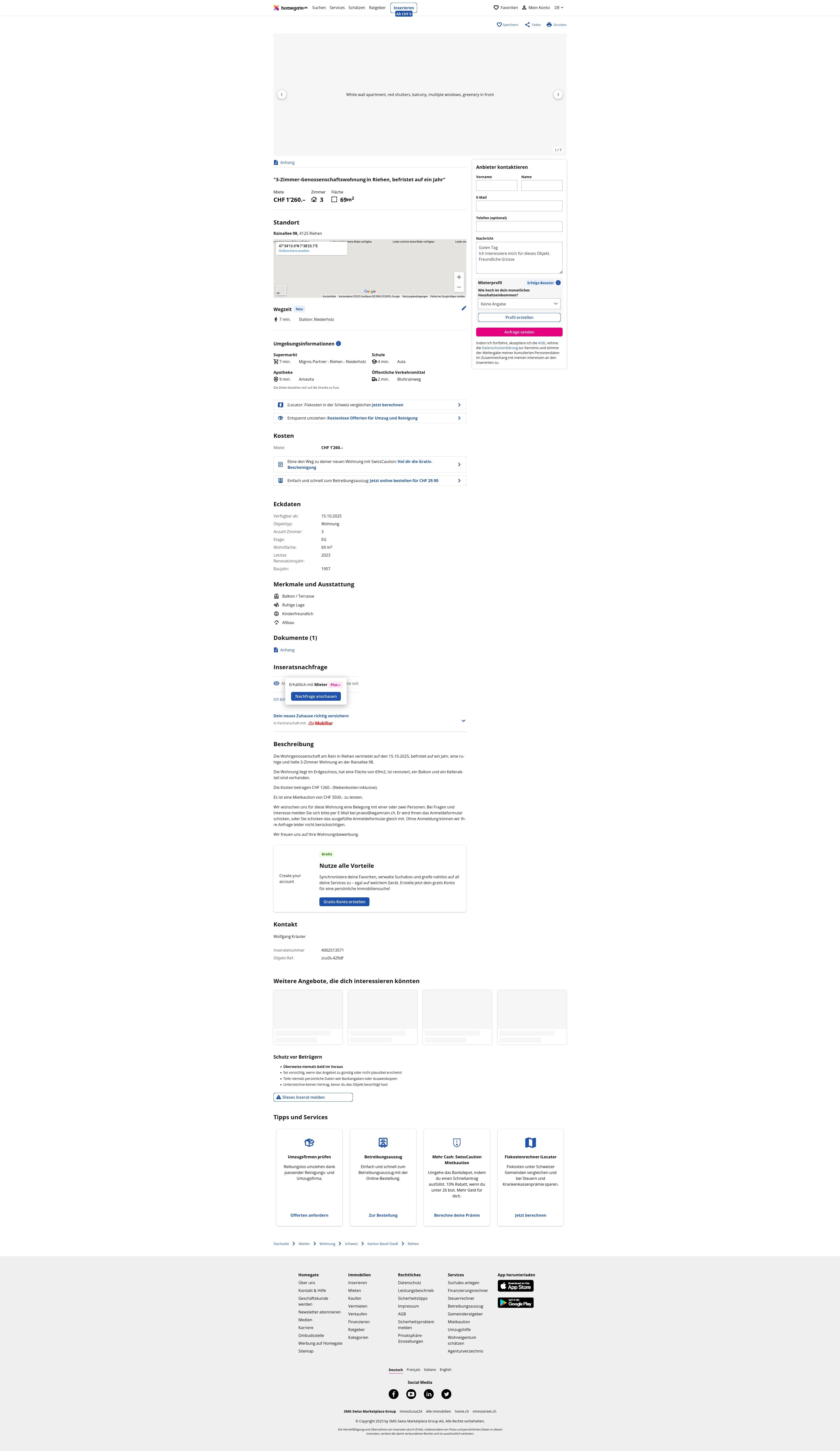 Die Kosten betragen CHF 1260.- (Nebenkosten inklusive).