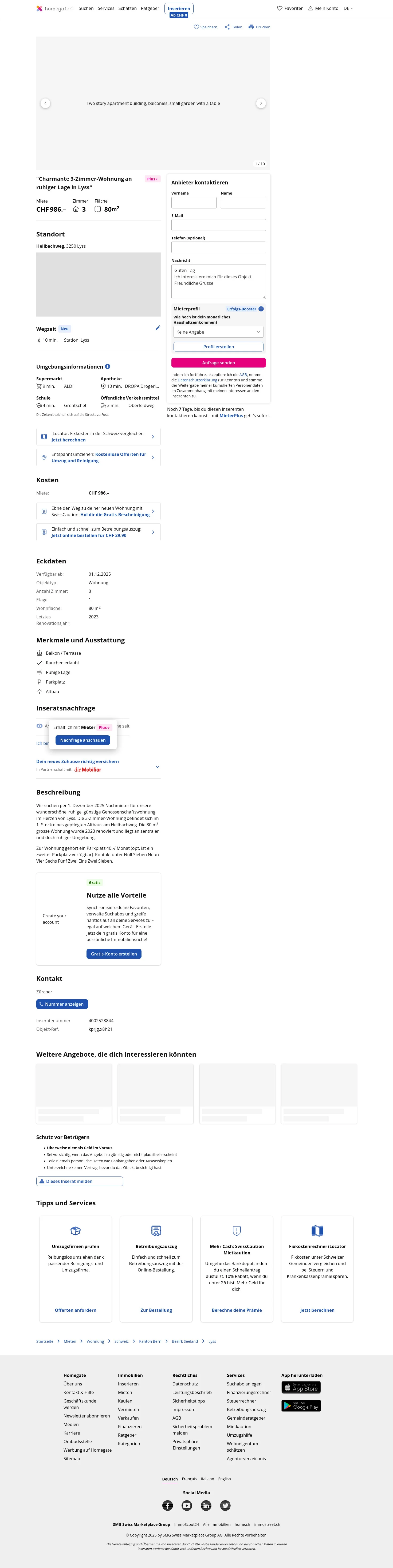 | Miete | CHF 986 /Mo |