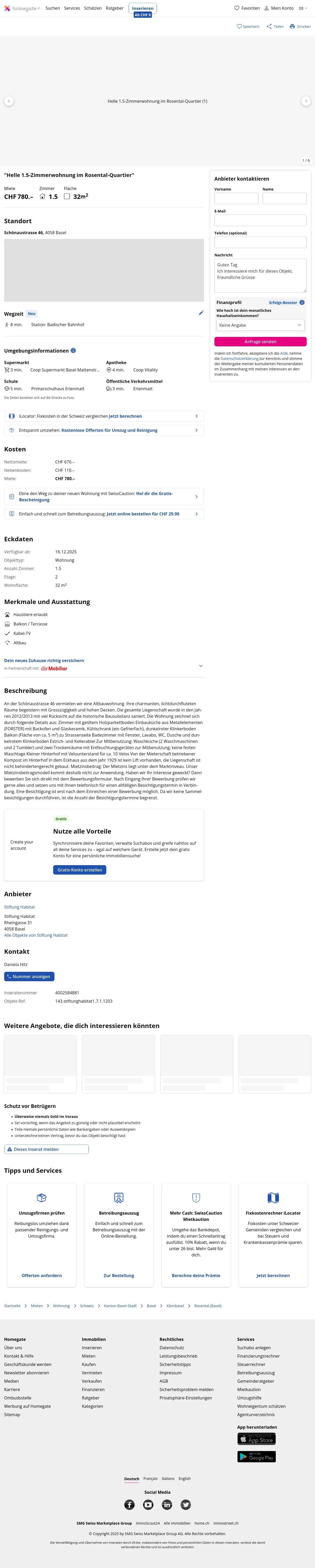 | Belegungsvorschriften | Die Liegenschaft ist nicht behindertengerecht gebaut; kein Lift vorhanden. |