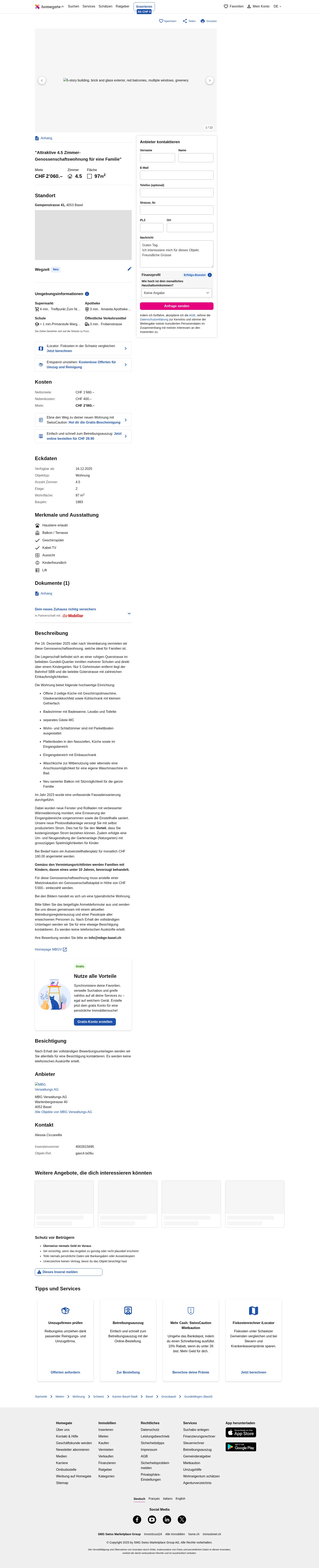 Bitte füllen Sie das beigefügte Anmeldeformular aus und senden Sie uns dieses gemeinsam mit einem aktuellen Betreibungsregisterauszug und einer Passkopie aller erwachsenen Personen zu. Nach Erhalt der vollständigen Unterlagen werden wir Sie für eine etwaige Besichtigung kontaktieren. Es werden keine telefonischen Auskünfte erteilt.