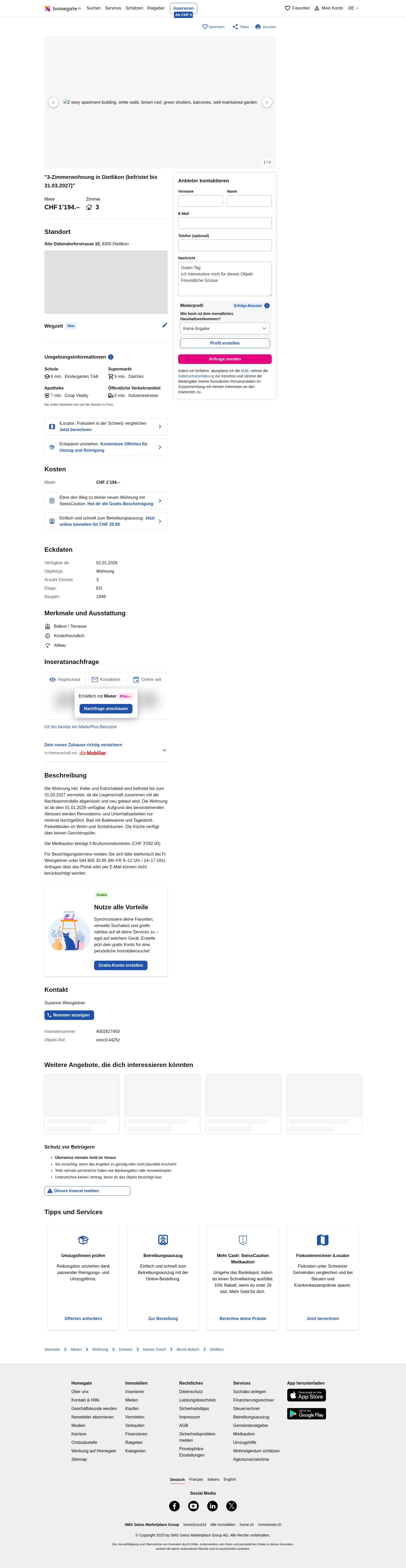 | Miete | CHF 1.194 /Mo |