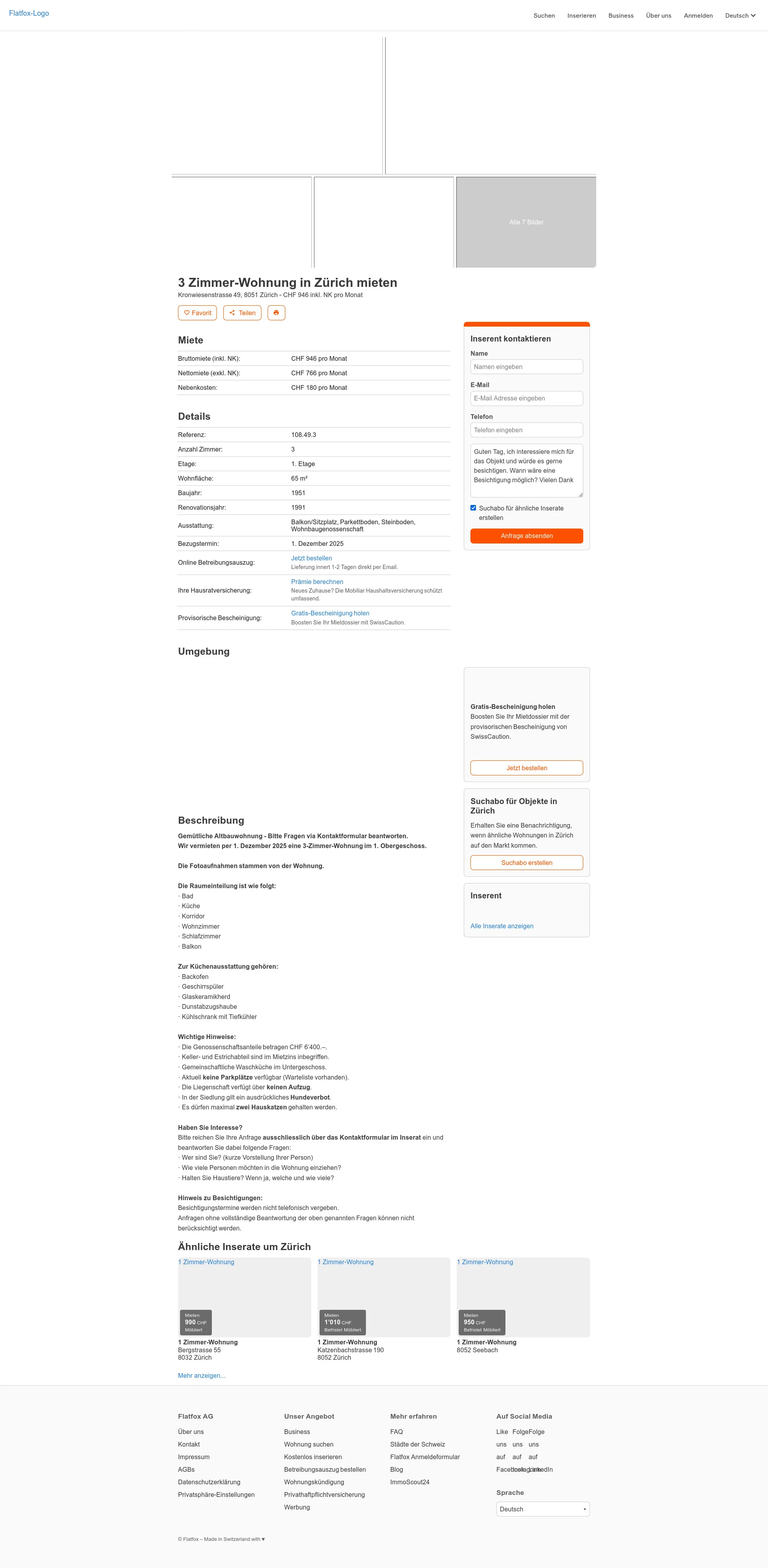 Bitte reichen Sie Ihre Anfrage ausschliesslich über das Kontaktformular im Inserat ein und beantworten Sie dabei folgende Fragen: