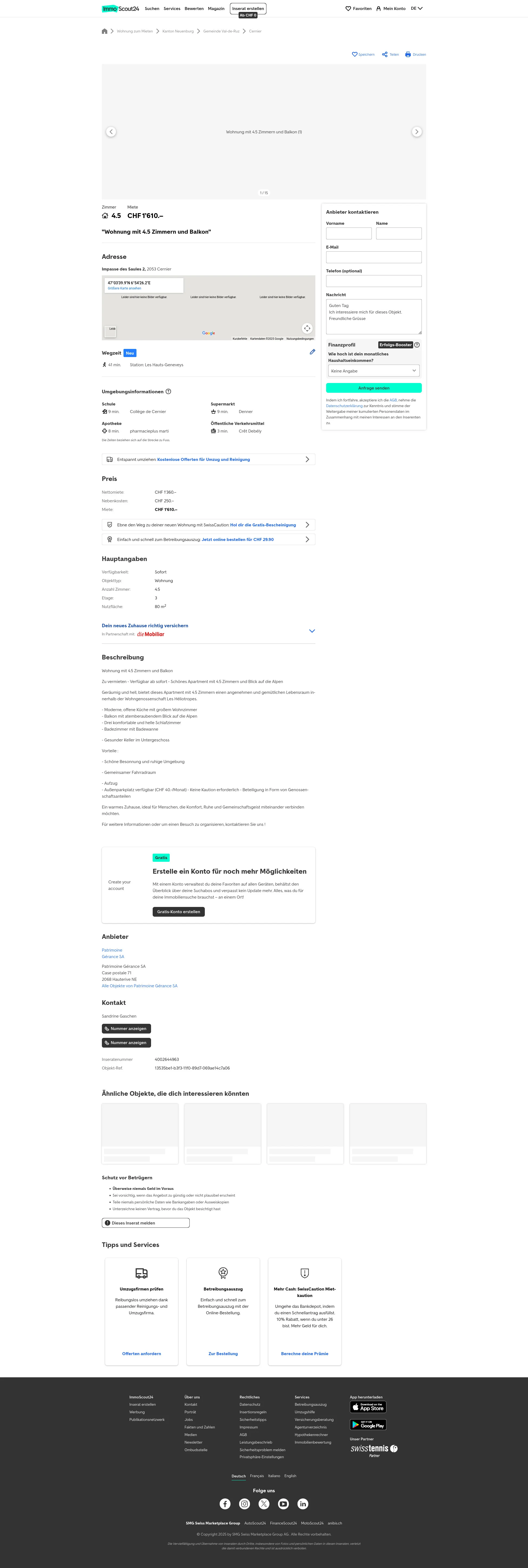 | Miete | CHF 1.610 /Mo |