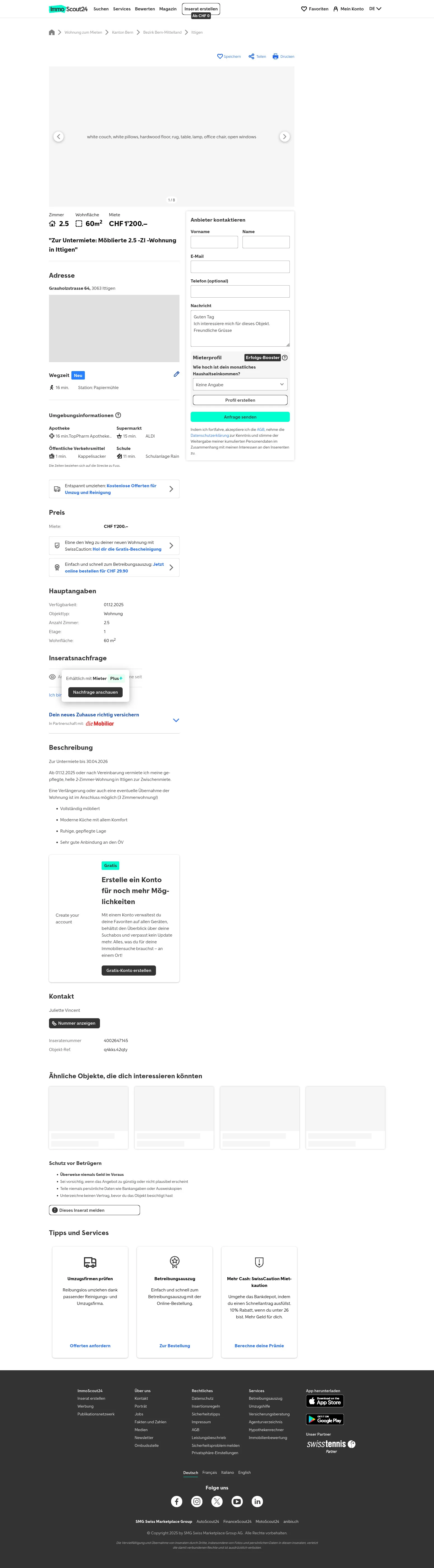 Ab 01.12.2025 oder nach Vereinbarung vermiete ich meine gepflegte, helle 2-Zimmer-Wohnung in Ittigen zur Zwischenmiete.