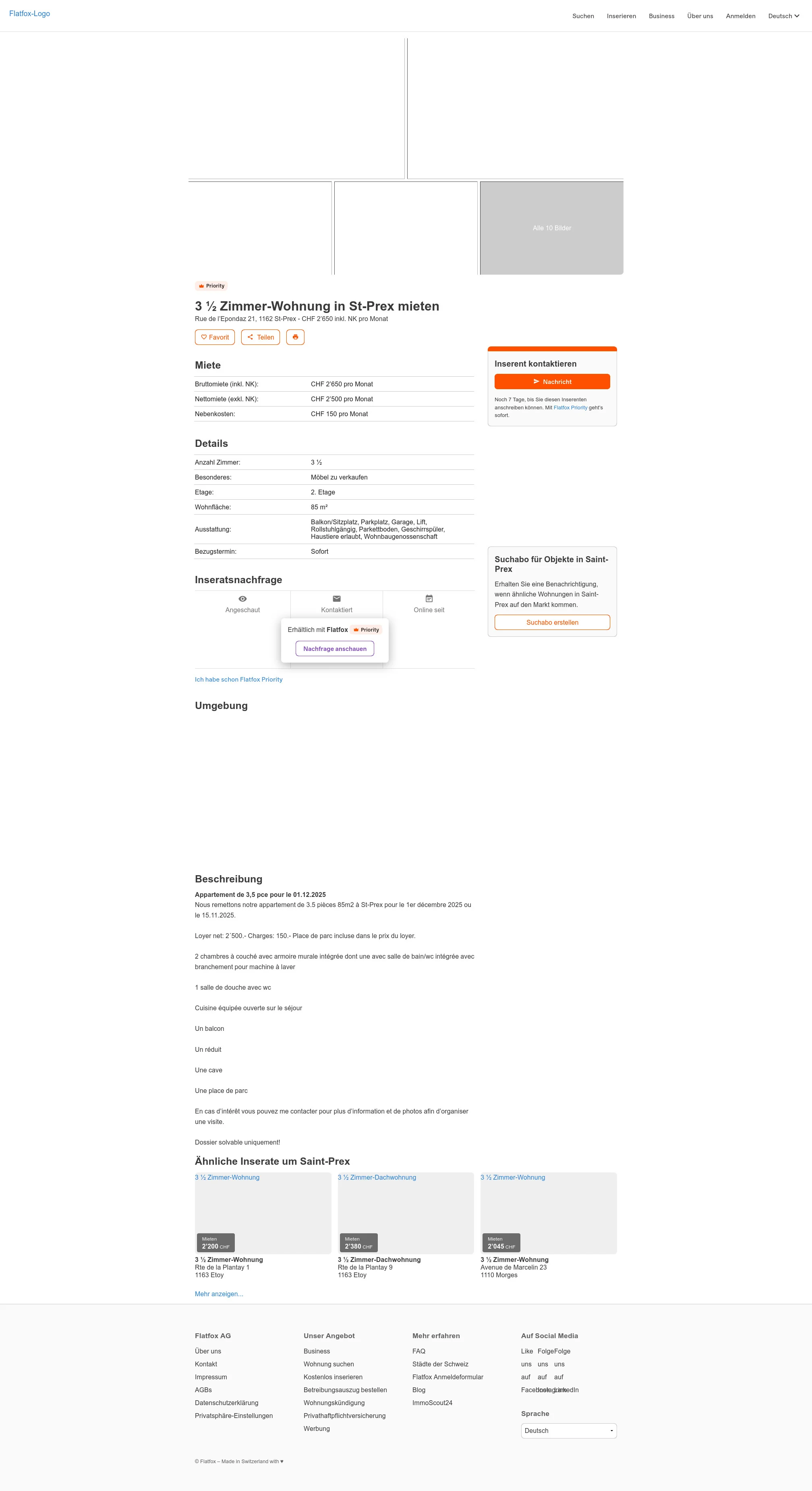 | Belegungsvorschriften | Nur solvente Bewerber; es wird ein zahlungsfähiges Dossier vorausgesetzt ("Dossier solvable uniquement"). |