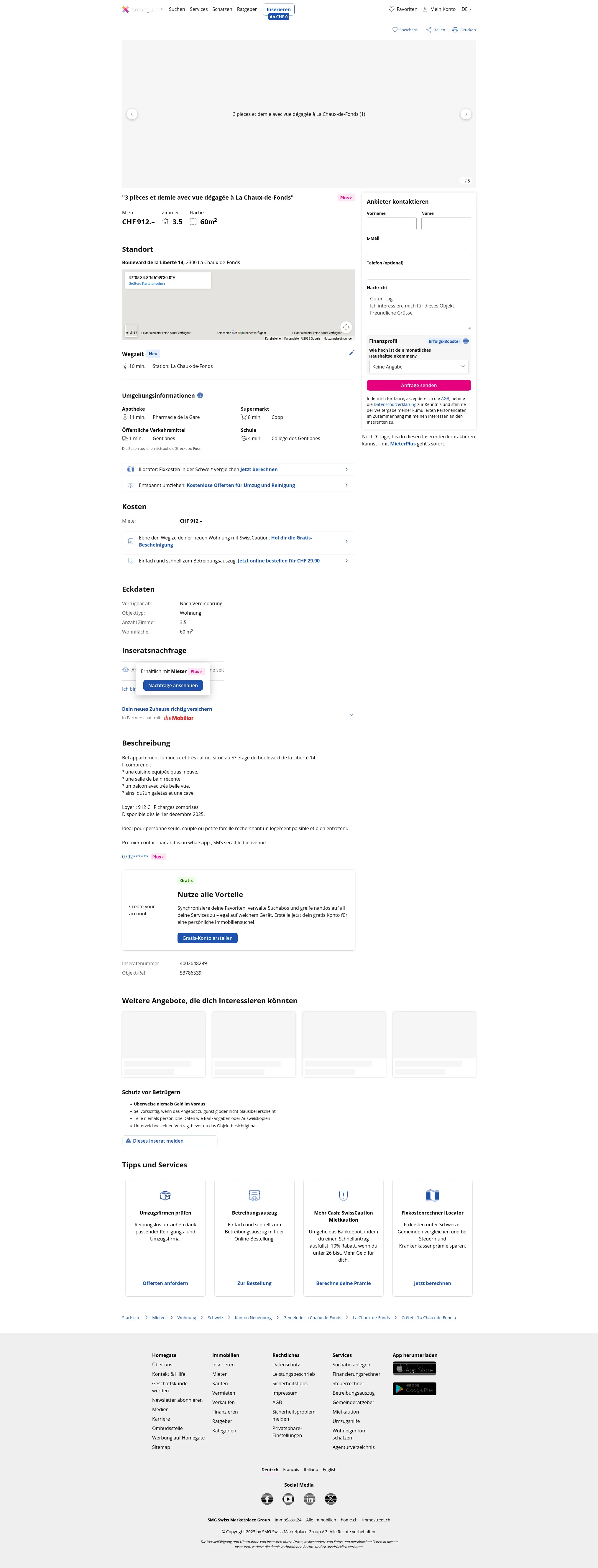 | Miete | CHF 912 /Mo |
