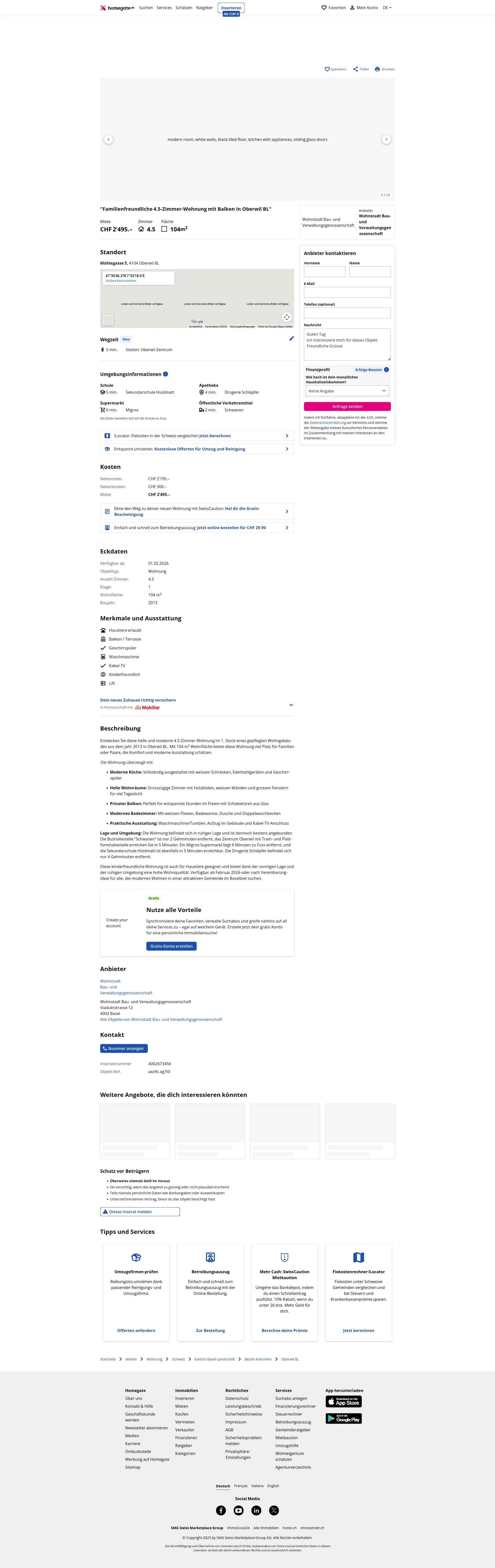 | Miete | CHF 2.495 /Mo |