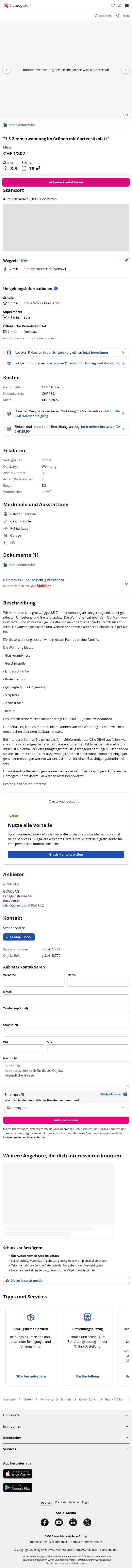 | Miete | CHF 1.807 /Mo |