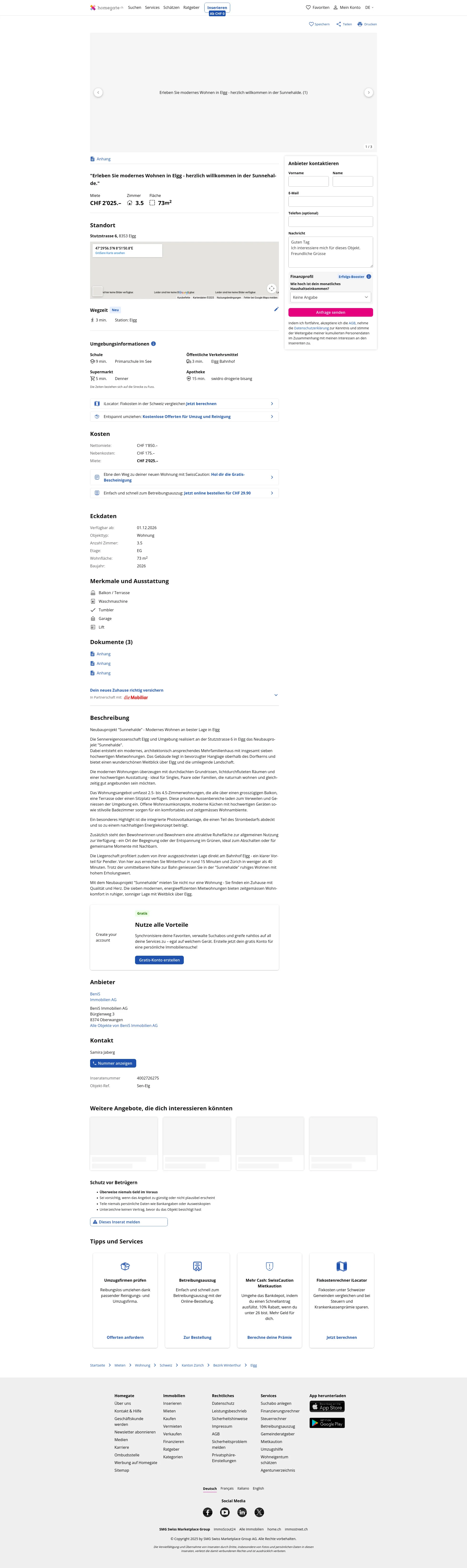 Mit dem Neubauprojekt "Sunnehalde" mieten Sie nicht nur eine Wohnung - Sie finden ein Zuhause mit Qualität und Herz. Die sieben modernen, energieeffizienten Mietwohnungen bieten zeitgemässen Wohnkomfort in ruhiger, sonniger Lage mit Weitblick über Elgg.