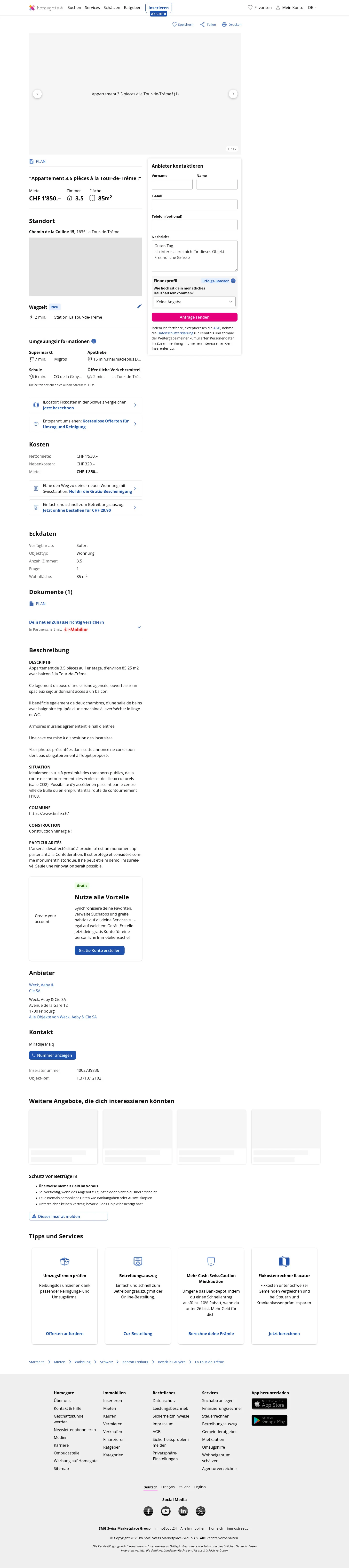 | Miete | CHF 1.850 /Mo |