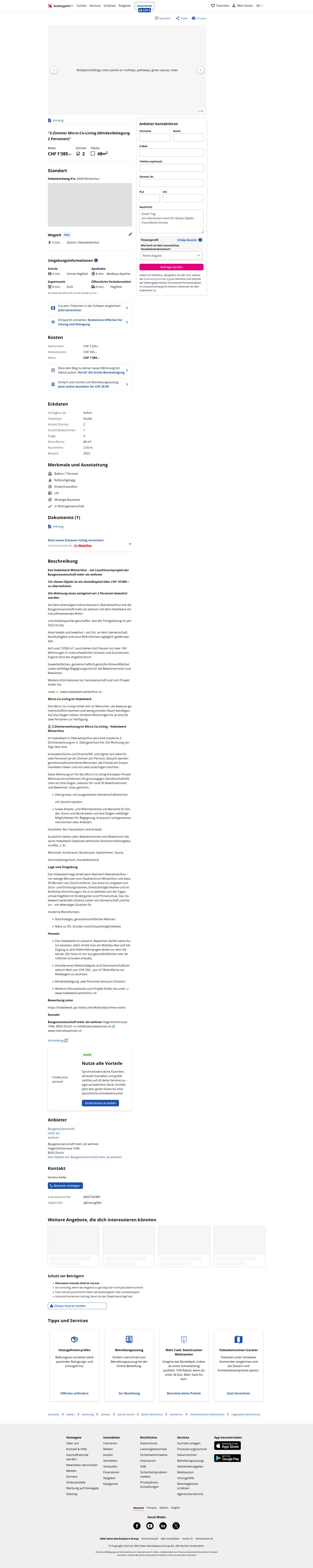 🏠 2-Zimmerwohnung im Micro-Co-Living – Hobelwerk Winterthur