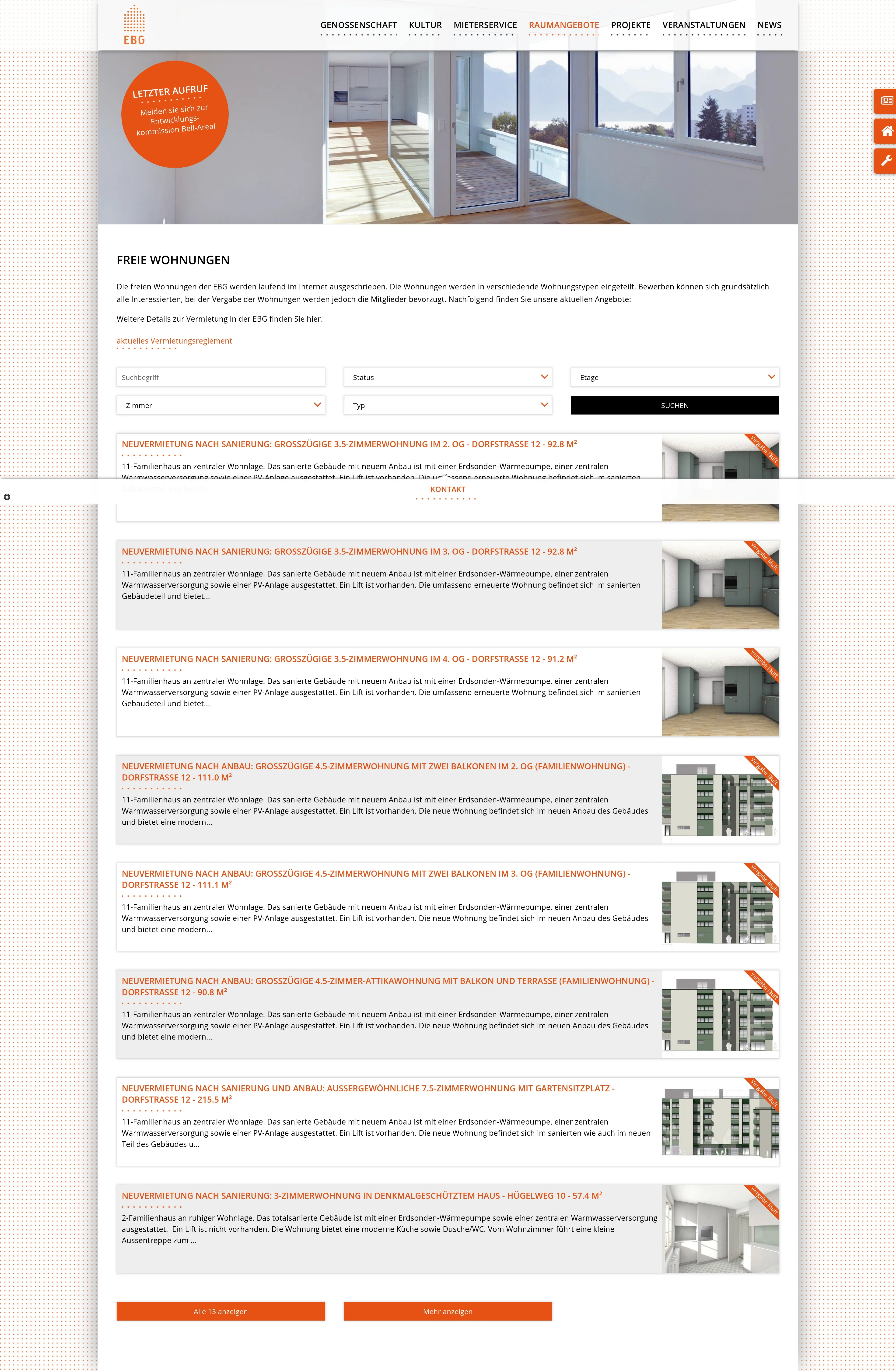 Bewerbungen mit 4 bis 7 Personen haben Vorrang. Familienwohnungen werden nur bis zum 30. Geburtstag des jüngsten eigenen Kindes vermietet (siehe Vermietungsreglement). Vermietung ab Plan; Vergabe läuft.