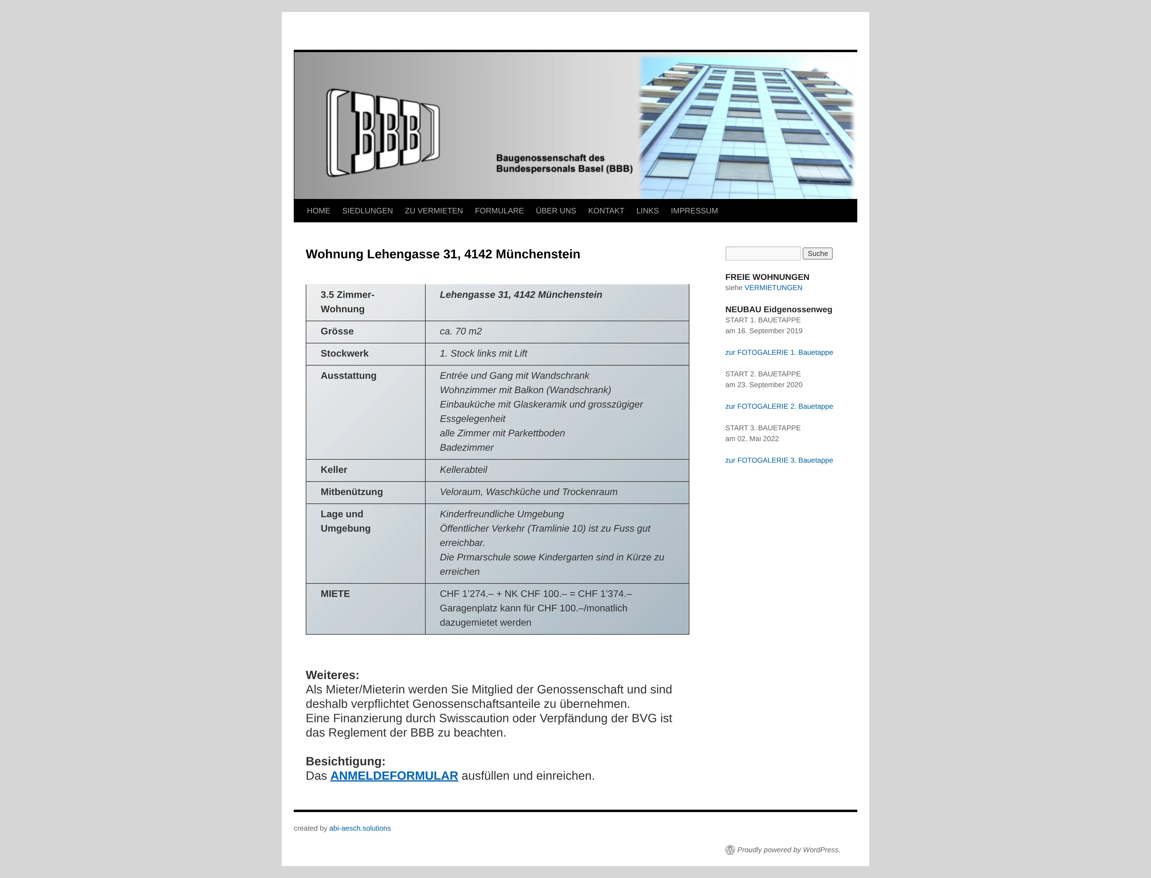 | Genossenschaft | Baugenossenschaft des Bundespersonals Basel (BBB) |