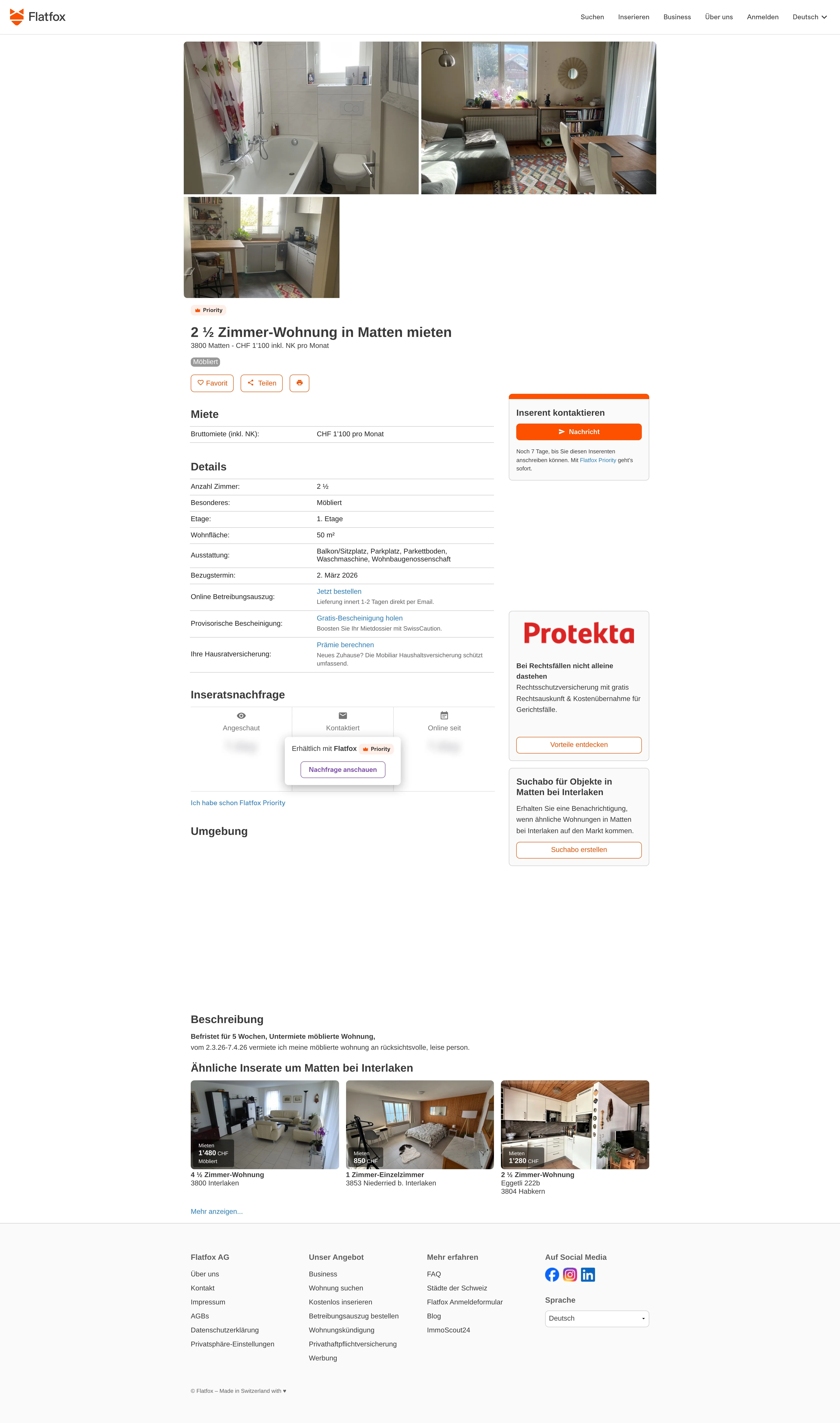 | Miete | CHF 1.100 /Mo |