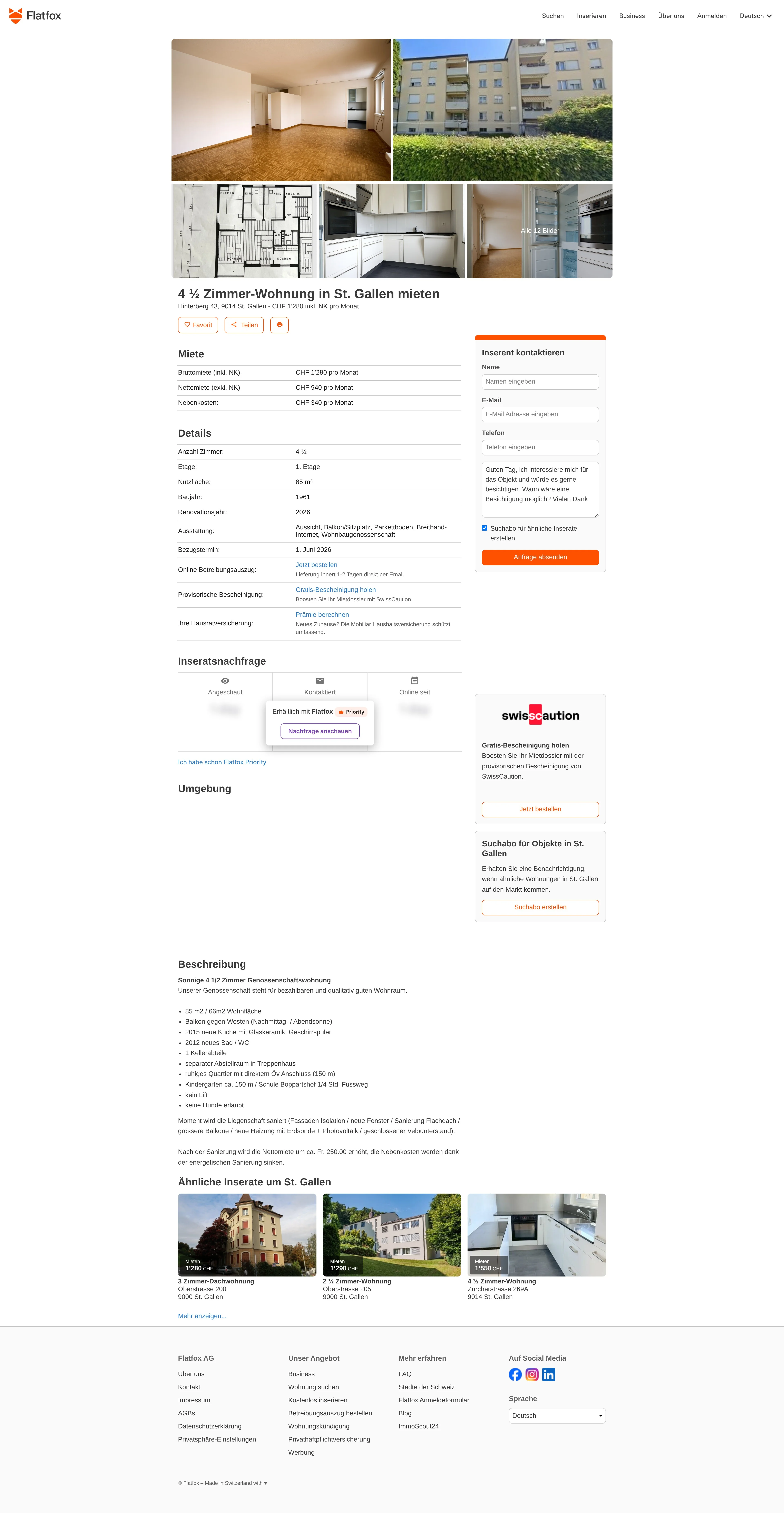 | Miete | CHF 1.280 /Mo |
