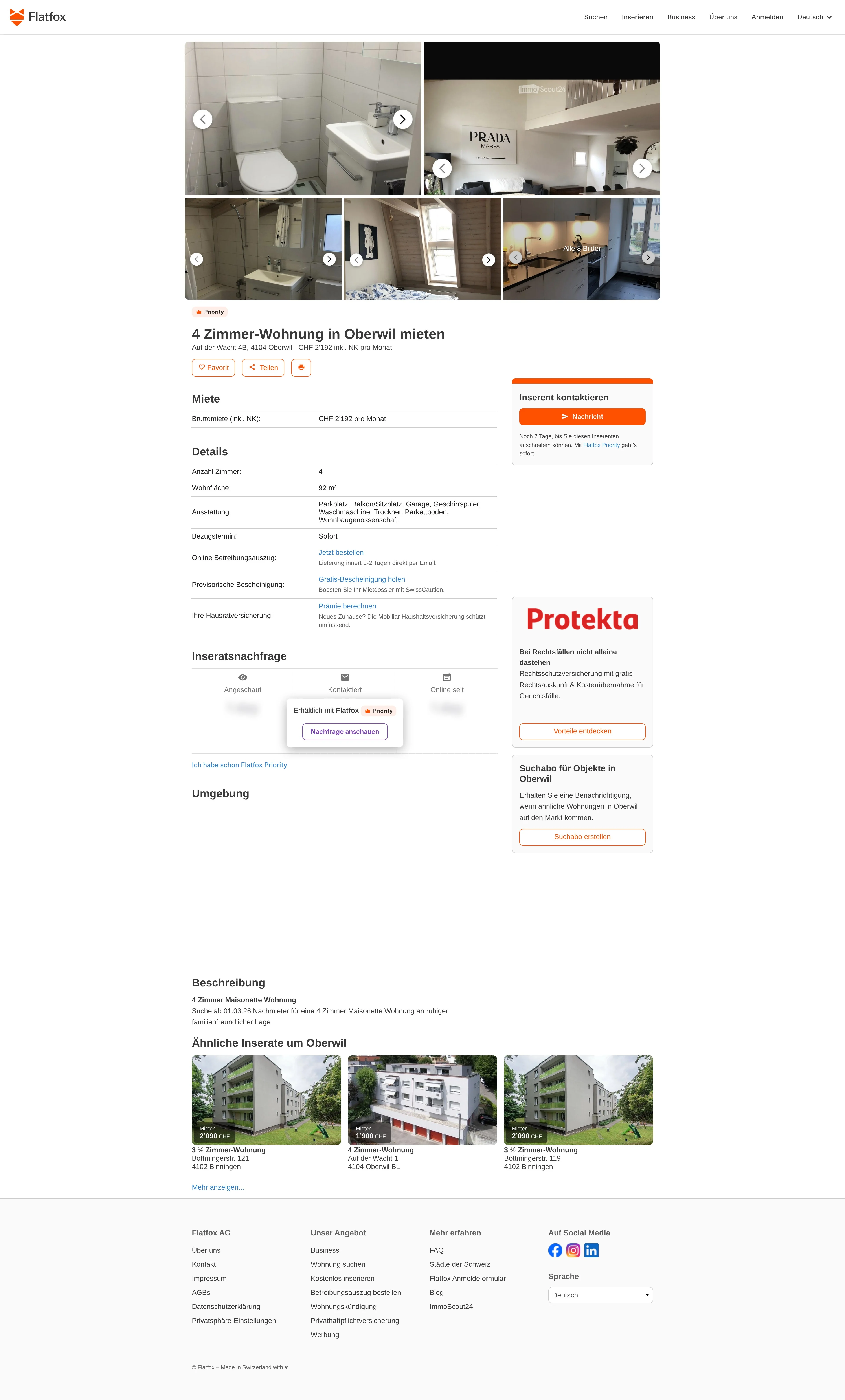 | Miete | CHF 2.192 /Mo |