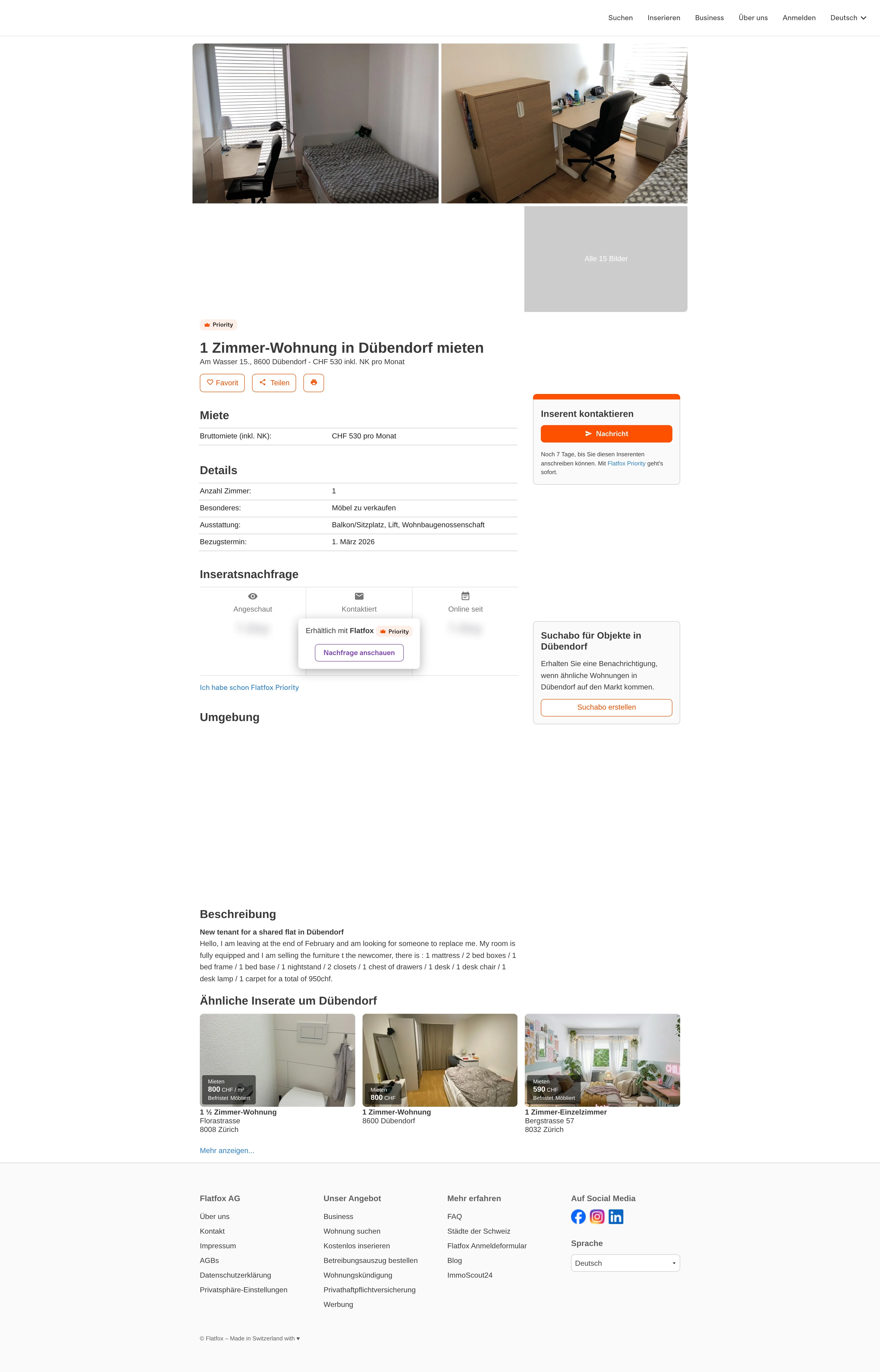 | Miete | CHF 530 /Mo |