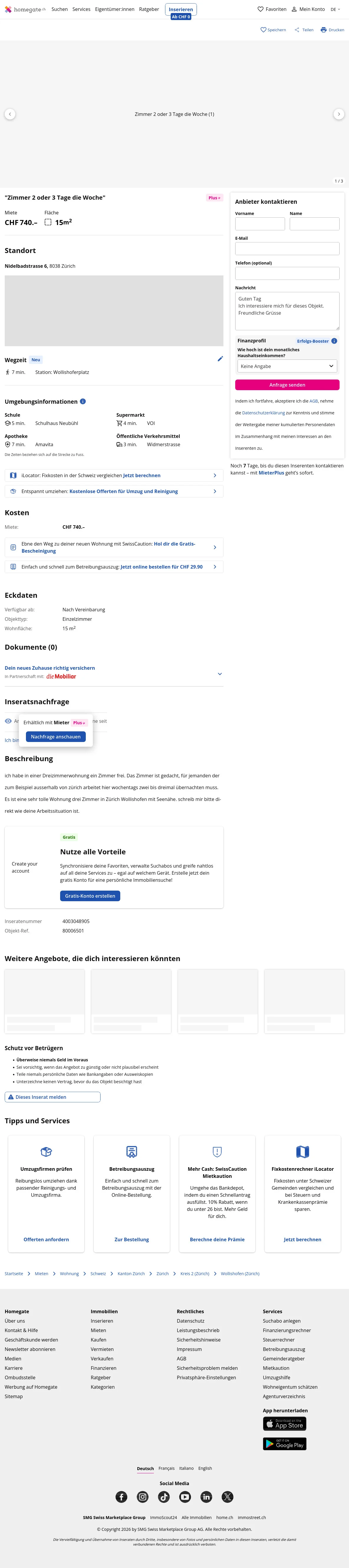 | Miete | CHF 740 /Mo |