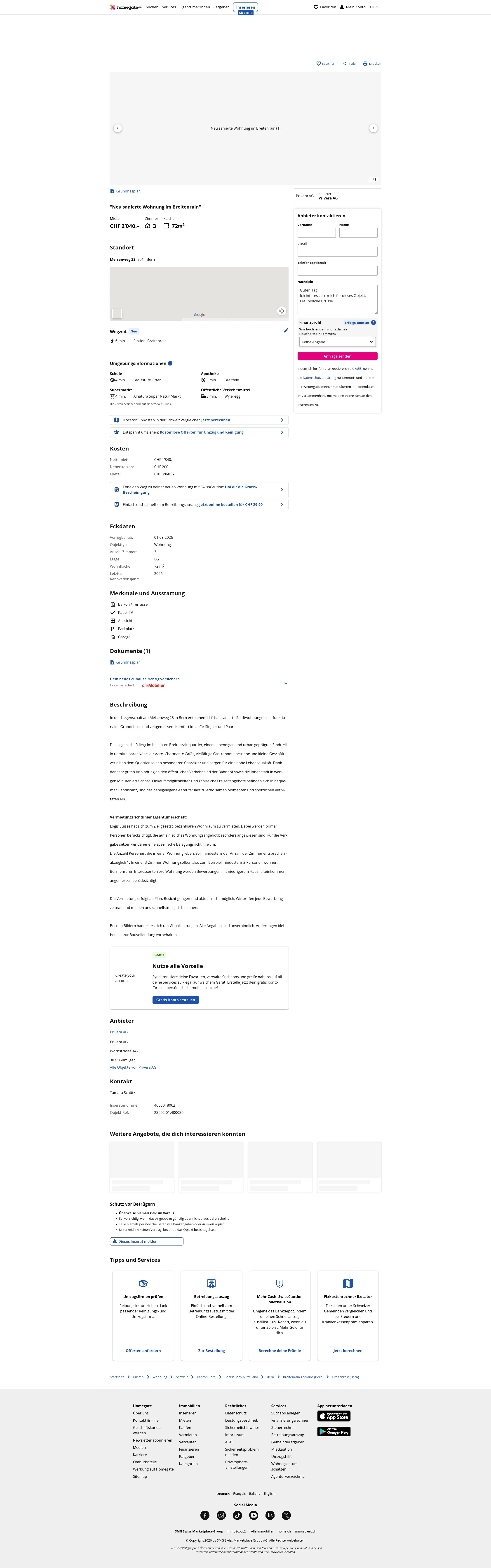 Diese 3.0-Zimmer-Wohnung gehört zur Liegenschaft am Meisenweg 23, 3014 Bern und ist eine von 11 frisch sanierten Stadtwohnungen mit funktionalen Grundrissen und zeitgemässem Komfort, ideal für Singles und Paare. Die Wohnfläche beträgt 72 m².