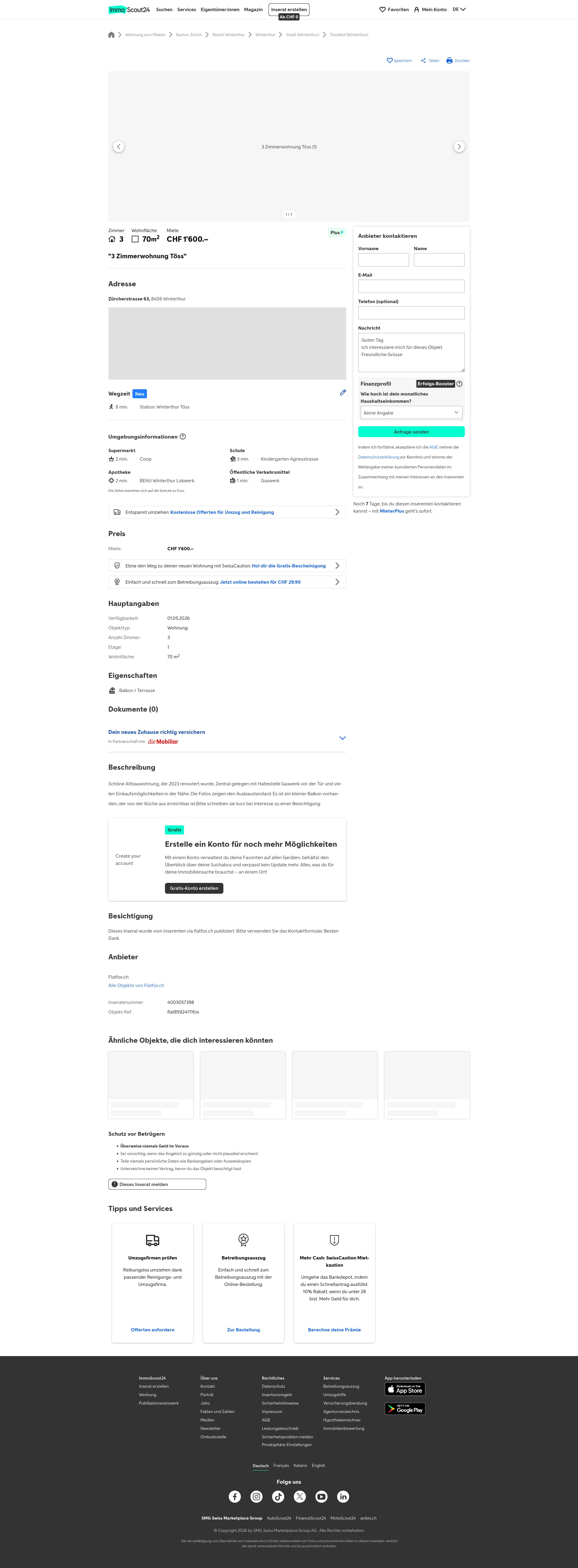 Diese 3.0-Zimmer-Wohnung in Winterthur (8406) umfasst 70 m² Wohnfläche und hat eine Miete von CHF 1'600/Monat.