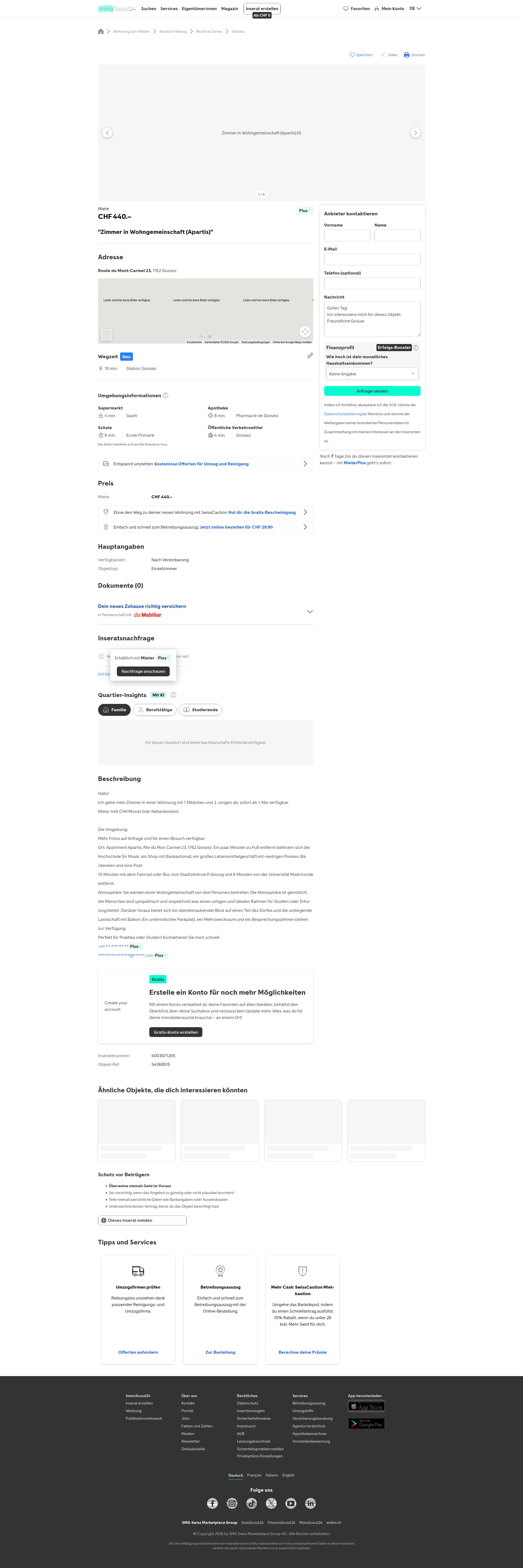Miete: CHF 440/Monat (inkl. Nebenkosten)