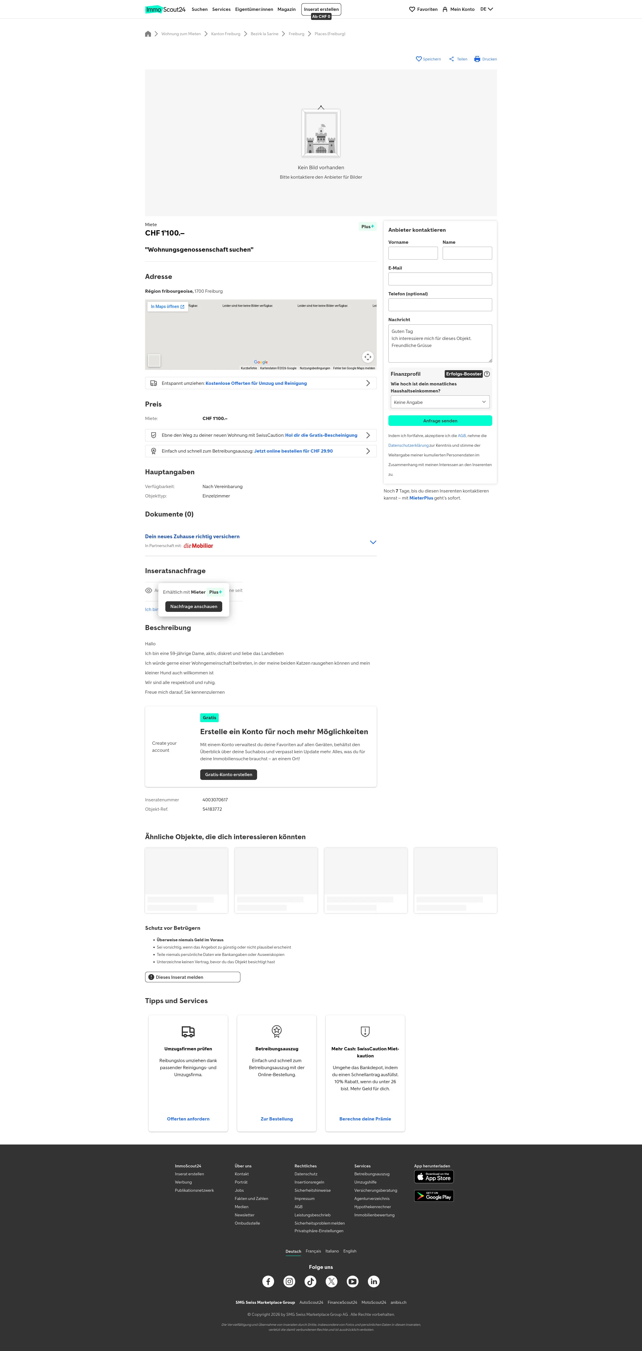 Die Interessentin möchte einer Wohngemeinschaft in Freiburg (1700) beitreten.