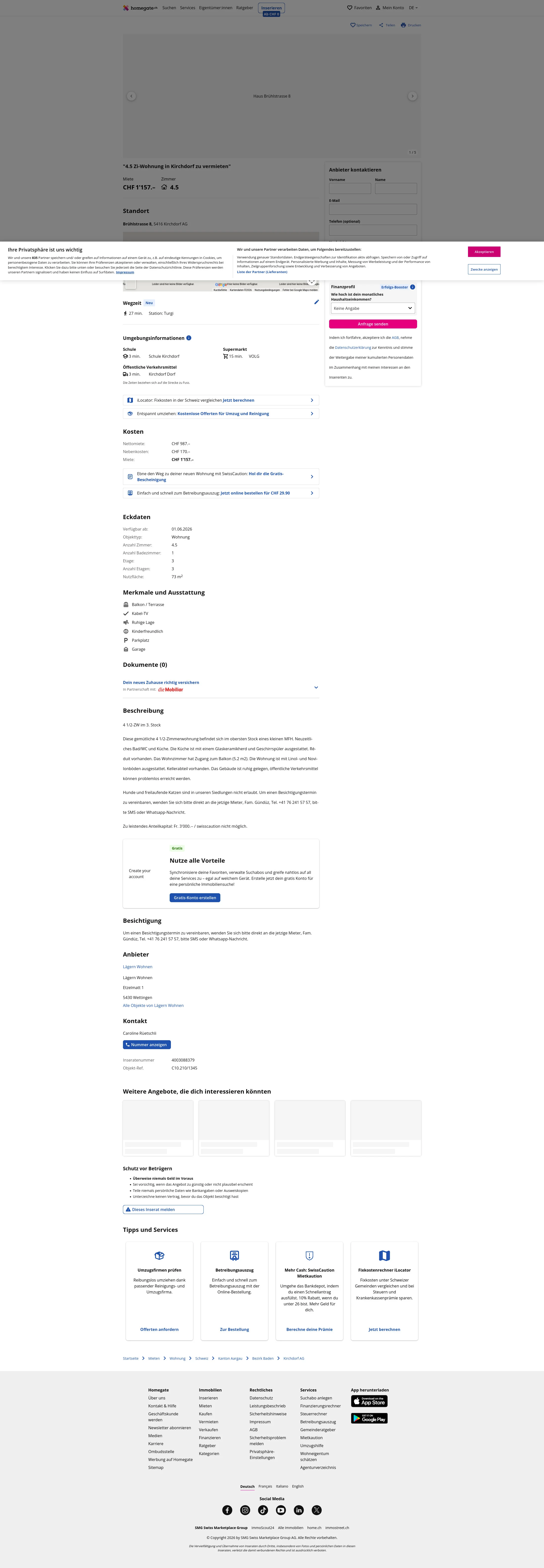 | Miete | CHF 1.157 /Mo |