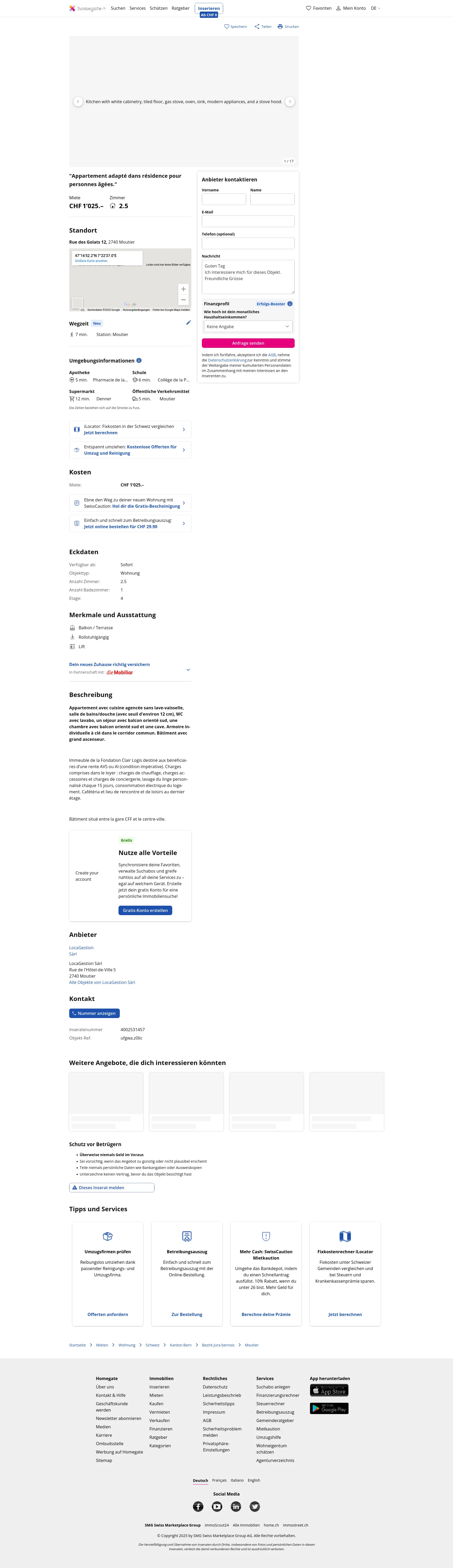 | Belegungsvorschriften | Gebäude der Fondation Clair Logis, bestimmt für Empfänger einer AHV- oder IV-Rente (zwingende Voraussetzung). |