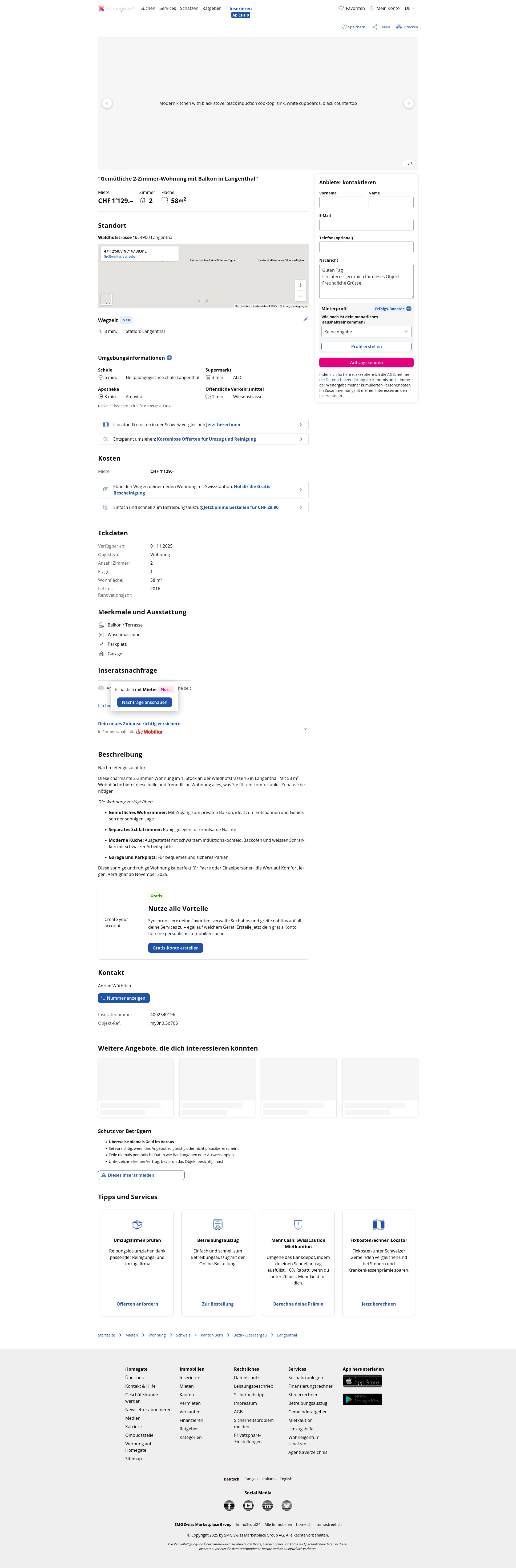 Diese charmante 2-Zimmer-Wohnung im 1. Stock an der Waldhofstrasse 16 in Langenthal. Mit 58 m² Wohnfläche bietet diese helle und freundliche Wohnung alles, was Sie für ein komfortables Zuhause benötigen.