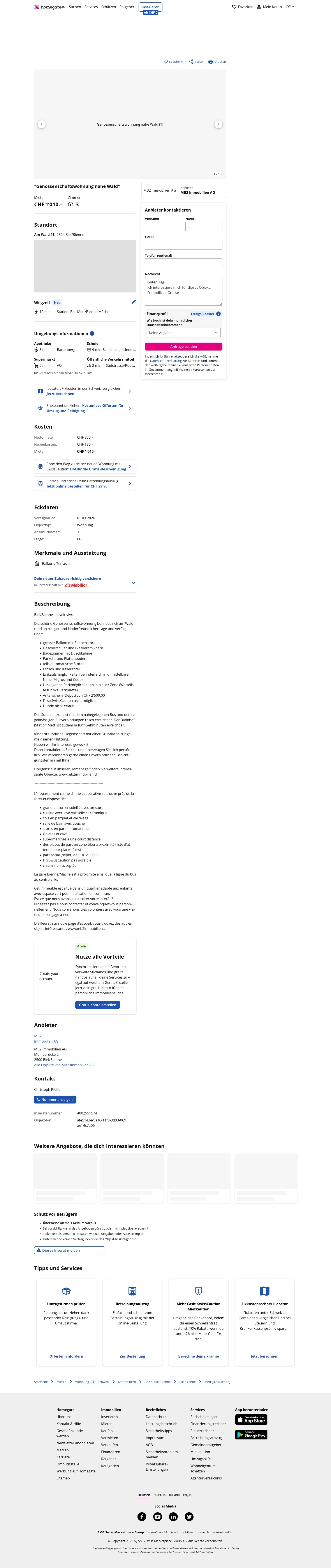 D'ailleurs : sur notre page d'accueil, vous trouvez des autres objets intéressants : www.mb2immobilien.ch