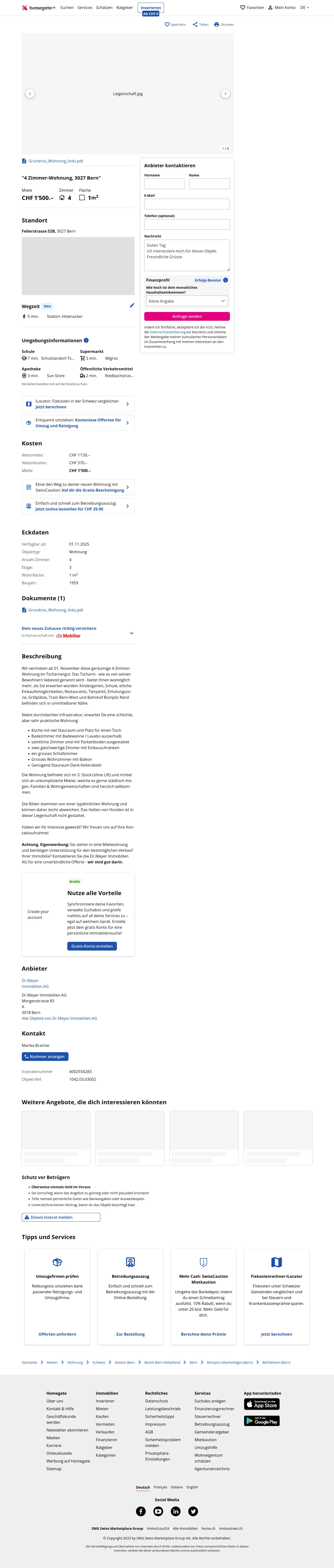 Achtung. Eigenwerbung: Sie ziehen in eine Mietwohnung und benötigen Unterstützung für den bestmöglichen Verkauf Ihrer Immobilie? Kontaktieren Sie die Dr.Meyer Immobilien AG für eine unverbindliche Offerte -