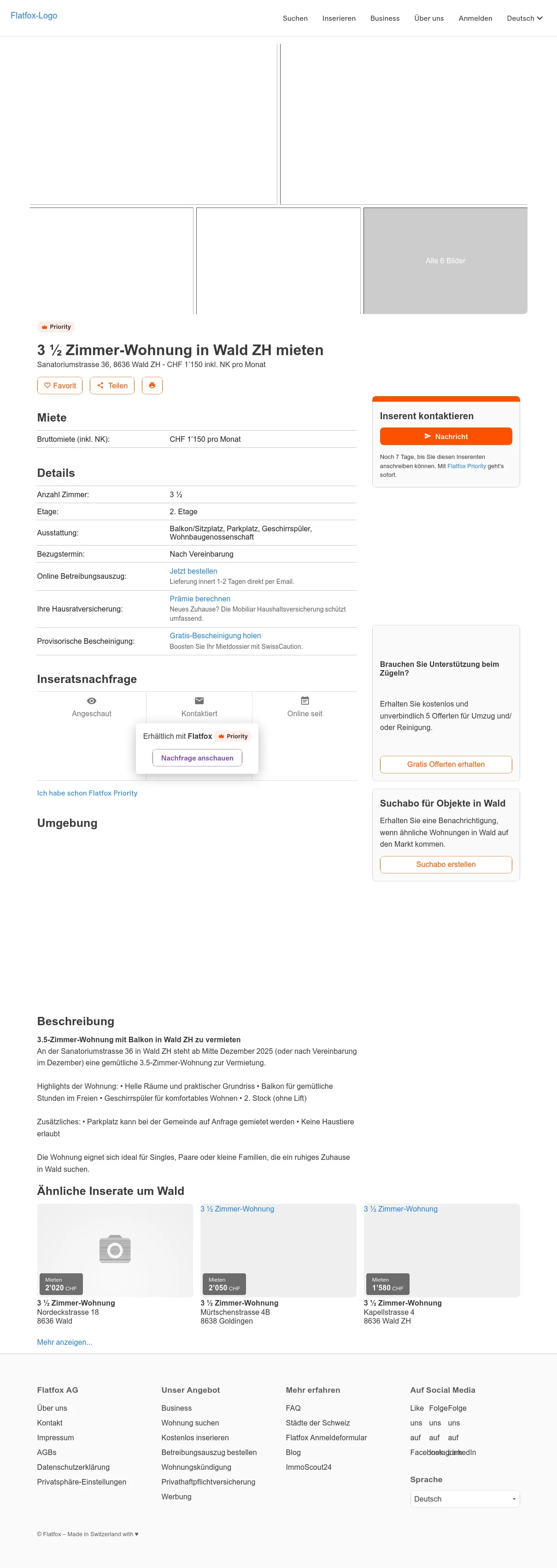 An der Sanatoriumstrasse 36 in Wald ZH steht ab Mitte Dezember 2025 (oder nach Vereinbarung im Dezember) eine gemütliche 3.5-Zimmer-Wohnung zur Vermietung.