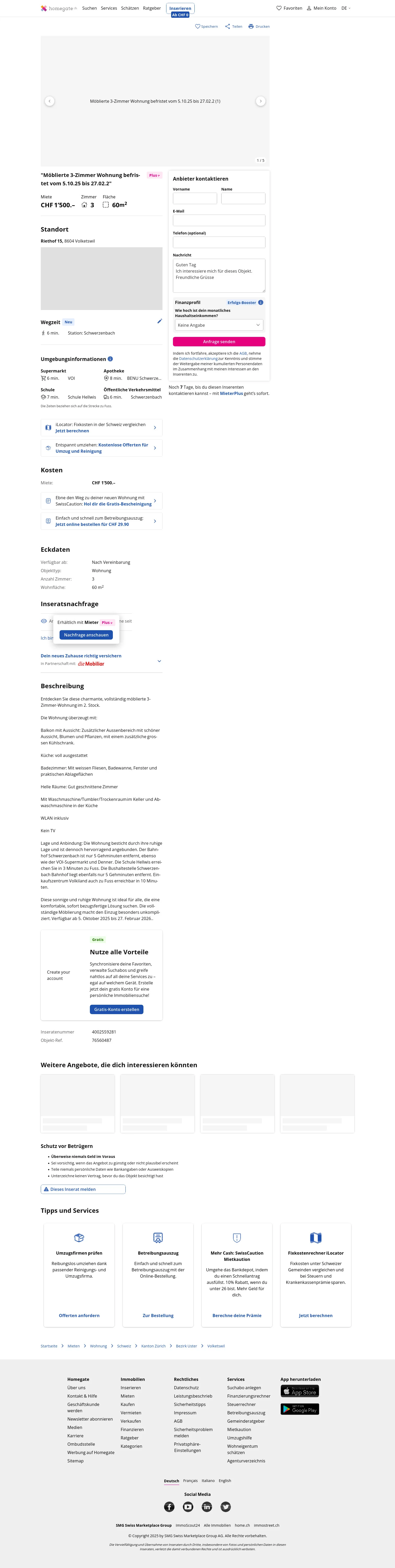 | Rent | CHF 1,500 /mo |