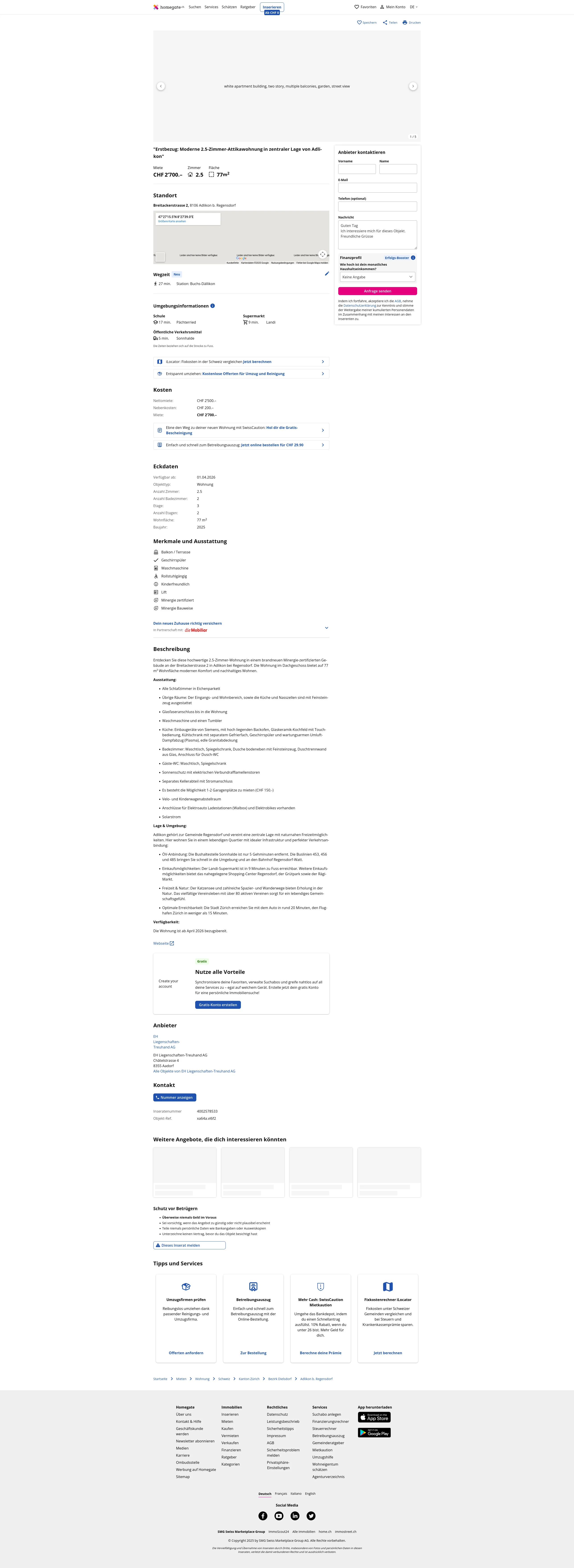 Entdecken Sie diese hochwertige 2.5-Zimmer-Wohnung in einem brandneuen Minergie-zertifizierten Gebäude an der Breitackerstrasse 2 in Adlikon bei Regensdorf. Die Wohnung im Dachgeschoss bietet auf 77 m² Wohnfläche modernen Komfort und nachhaltiges Wohnen.