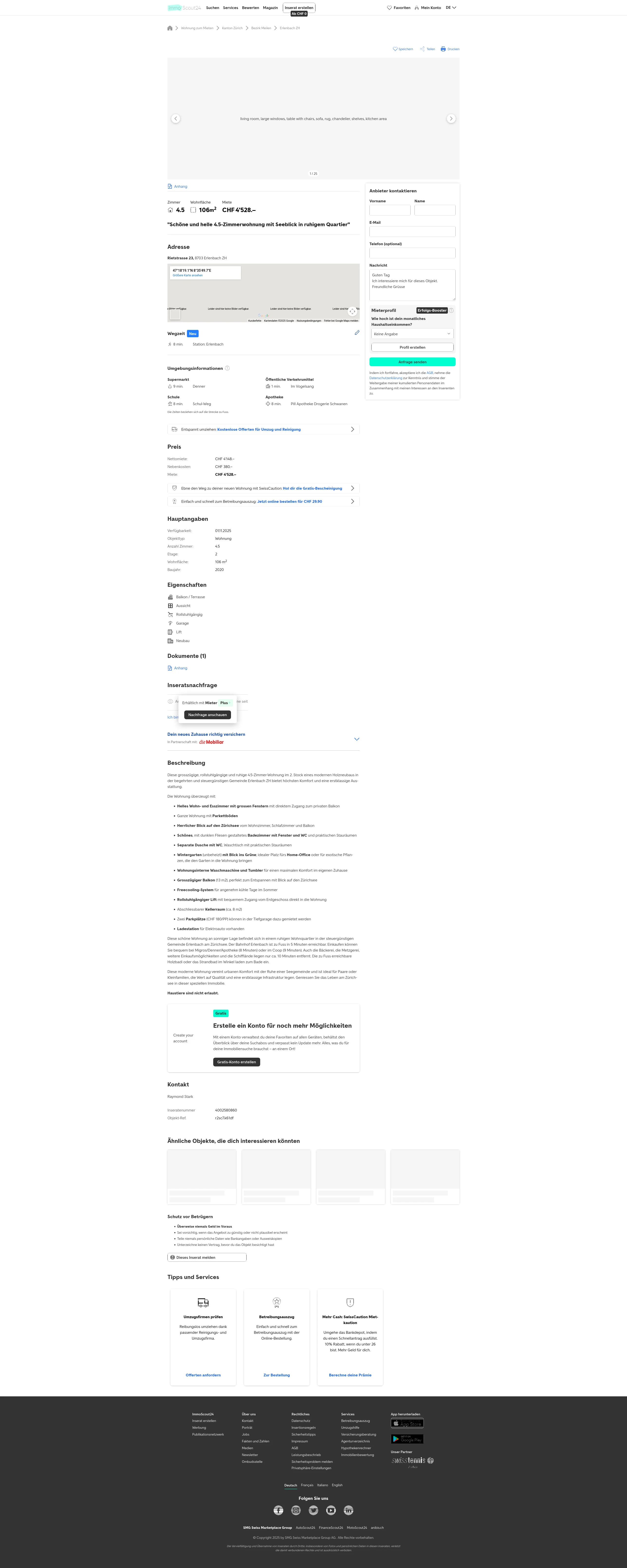 Diese schöne Wohnung an sonniger Lage befindet sich in einem ruhigen Wohnquartier in der steuergünstigen Gemeinde Erlenbach am Zürichsee. Der Bahnhof Erlenbach ist zu Fuss in 5 Minuten erreichbar. Einkaufen können Sie bequem bei Migros/Denner/Apotheke (8 Minuten) oder im Coop (9 Minuten). Auch die Bäckerei, die Metzgerei, weitere Einkaufsmöglichkeiten und die Schifflände liegen nur ca. 10 Minuten entfernt. Die zu Fuss erreichbare Holzbadi oder das Strandbad im Winkel laden zum Bade ein.