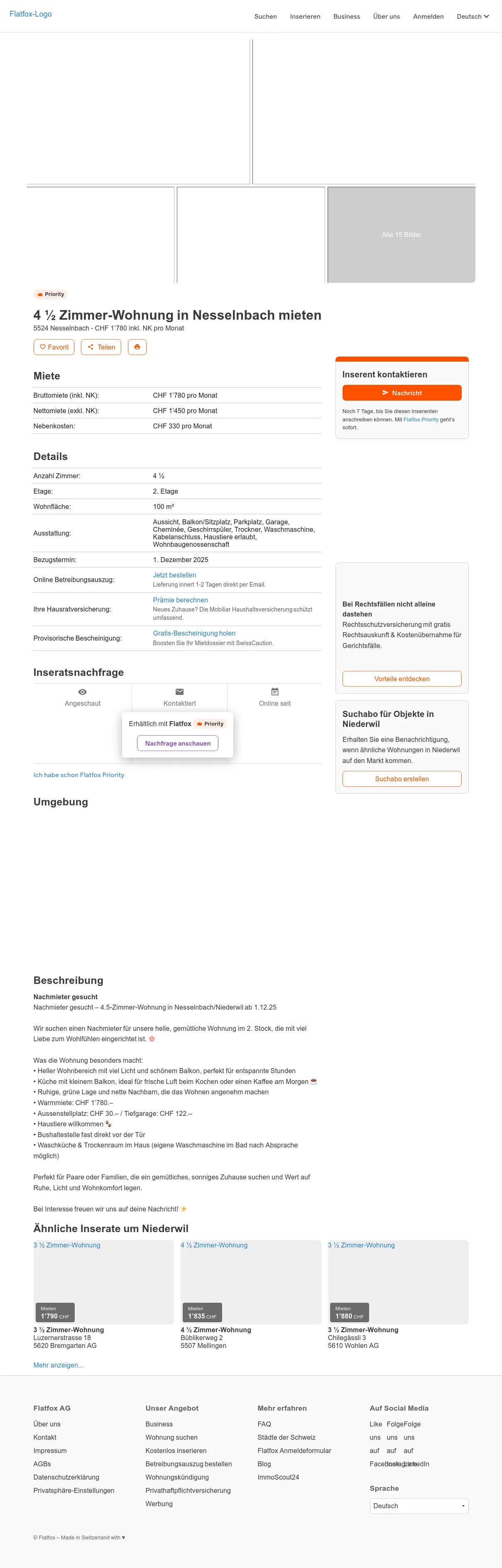 Nachmieter gesucht – 4.5-Zimmer-Wohnung in Nesselnbach/Niederwil ab 1.12.25