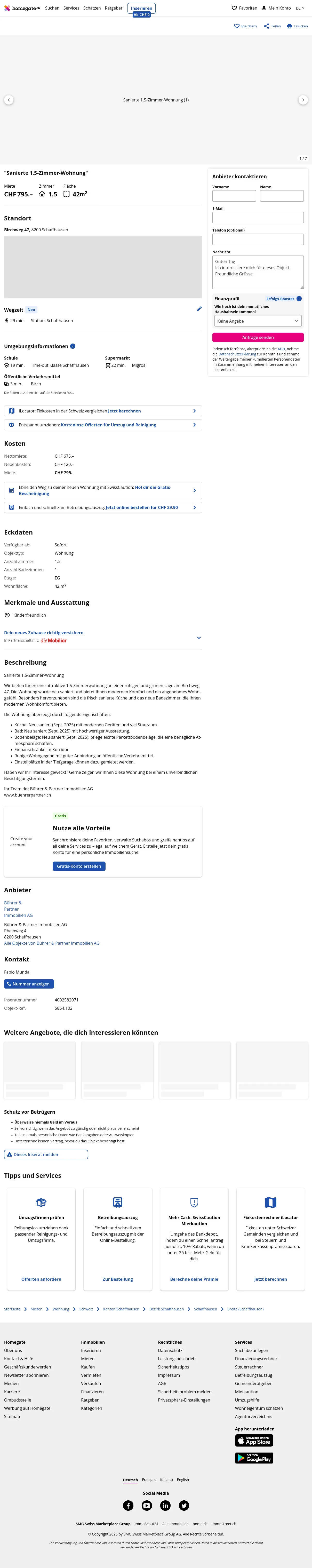 Wir bieten Ihnen eine attraktive 1.5-Zimmerwohnung an einer ruhigen und grünen Lage am Birchweg 47. Die Wohnung wurde neu saniert und bietet Ihnen modernen Komfort und ein angenehmes Wohngefühl. Besonders hervorzuheben sind die frisch sanierte Küche und das neue Badezimmer, die Ihnen modernen Wohnkomfort bieten.