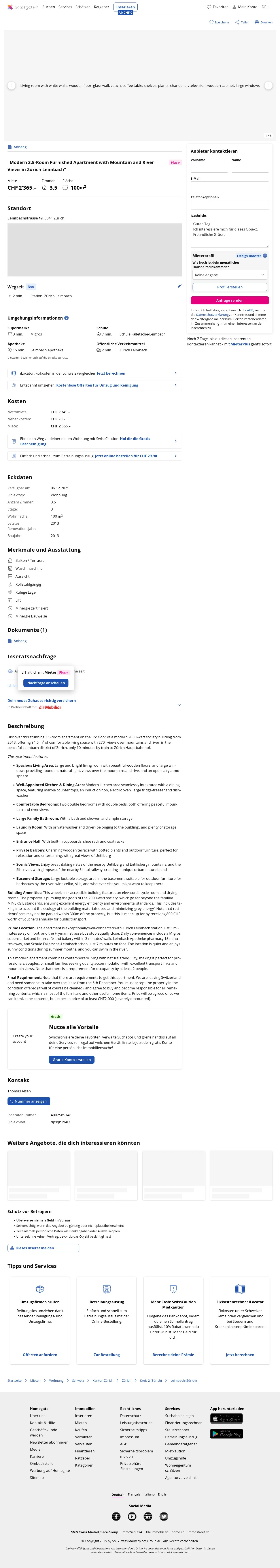 Entdecken Sie diese atemberaubende 3,5-Zimmer-Wohnung im 3. Stock eines modernen 2000-Watt-Gesellschaftsgebäudes aus dem Jahr 2013, das 94,6 m² Wohnfläche mit 270°-Blick auf Berge und Fluss bietet, im ruhigen Leimbach-Viertel von Zürich, nur 10 Minuten mit dem Zug vom Zürcher Hauptbahnhof entfernt.