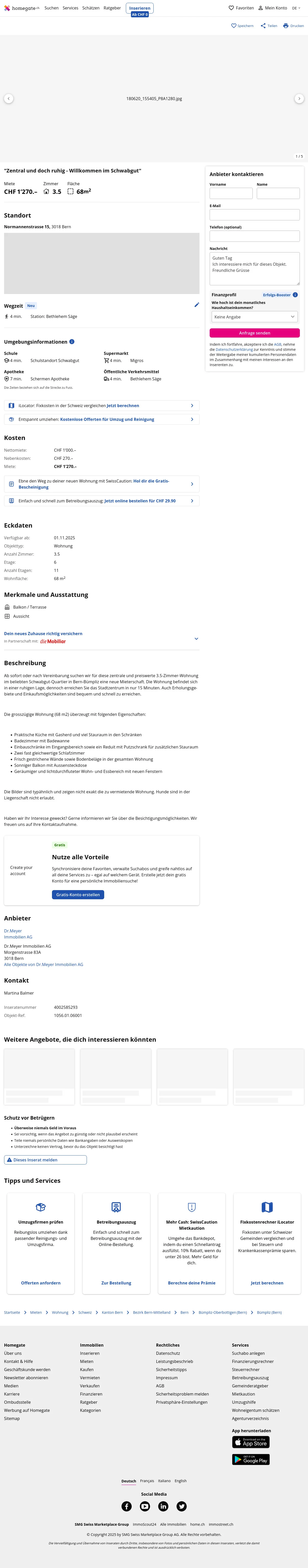 Ab sofort oder nach Vereinbarung suchen wir für diese zentrale und preiswerte 3.5-Zimmer-Wohnung im beliebten Schwabgut-Quartier in Bern-Bümpliz eine neue Mieterschaft. Die Wohnung befindet sich in einer ruhigen Lage, dennoch erreichen Sie das Stadtzentrum in nur 15 Minuten. Auch Erholungsgebiete und Einkaufsmöglichkeiten sind bequem und schnell zu erreichen.