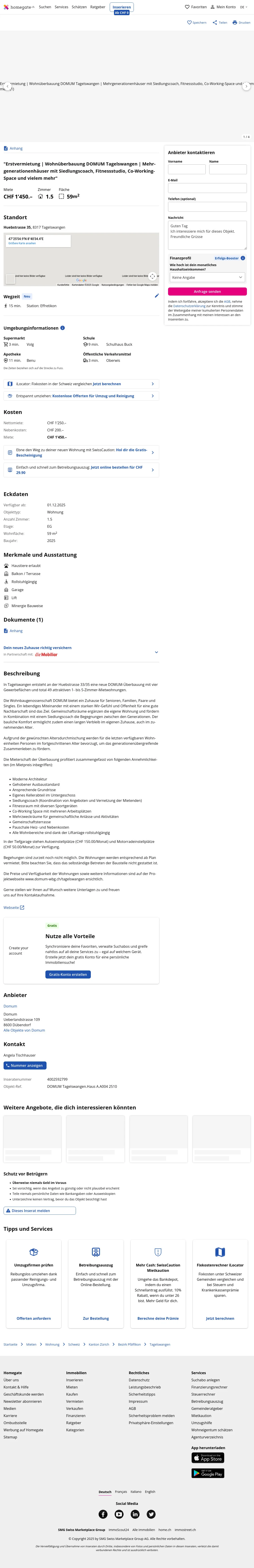 Die Preise und Verfügbarkeit der Wohnungen sowie weitere Informationen sind auf der Projektwebseite www.domum-wbg.ch/tagelswangen ersichtlich.