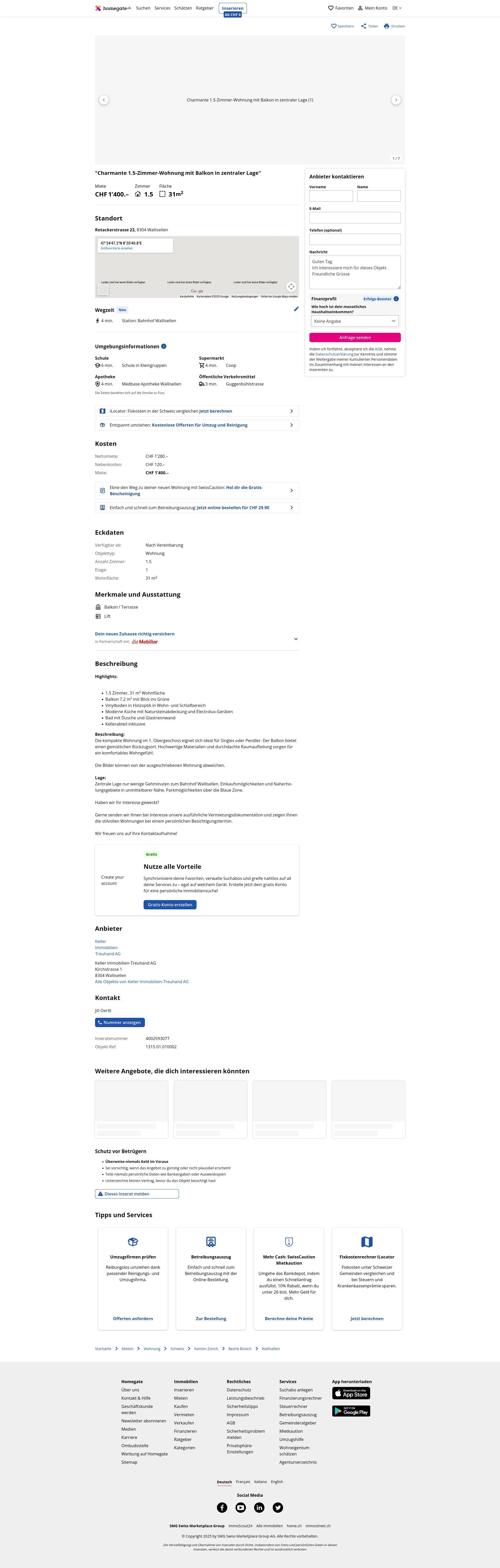 Lage:Zentrale Lage nur wenige Gehminuten zum Bahnhof Wallisellen. Einkaufsmöglichkeiten und Naherholungsgebiete in unmittelbarer Nähe. Parkmöglichkeiten über die Blaue Zone.