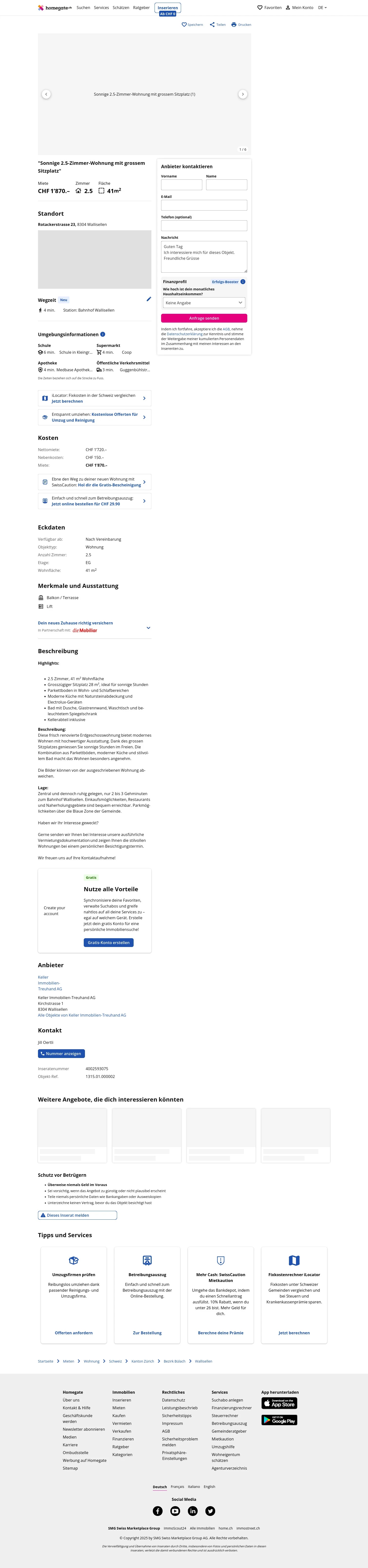 Lage:Zentral und dennoch ruhig gelegen, nur 2 bis 3 Gehminuten zum Bahnhof Wallisellen. Einkaufsmöglichkeiten, Restaurants und Naherholungsgebiete sind bequem erreichbar. Parkmöglichkeiten über die Blaue Zone der Gemeinde.