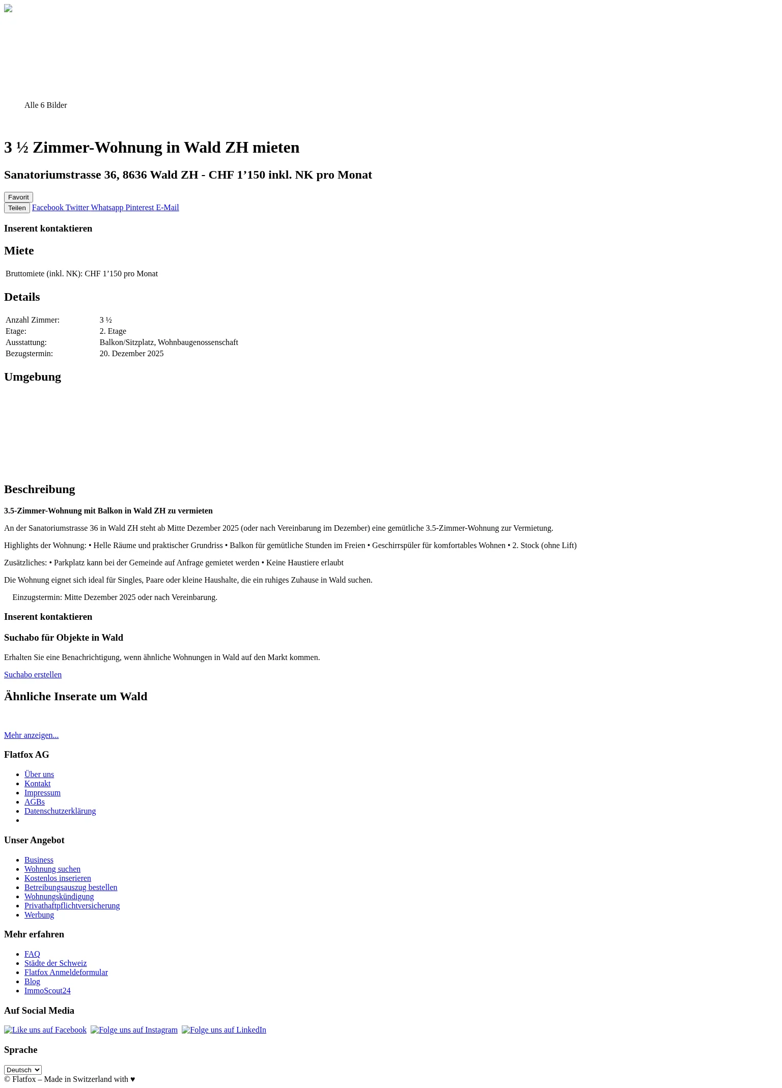 An der Sanatoriumstrasse 36 in Wald ZH steht ab Mitte Dezember 2025 (oder nach Vereinbarung im Dezember) eine gemütliche 3.5-Zimmer-Wohnung zur Vermietung.