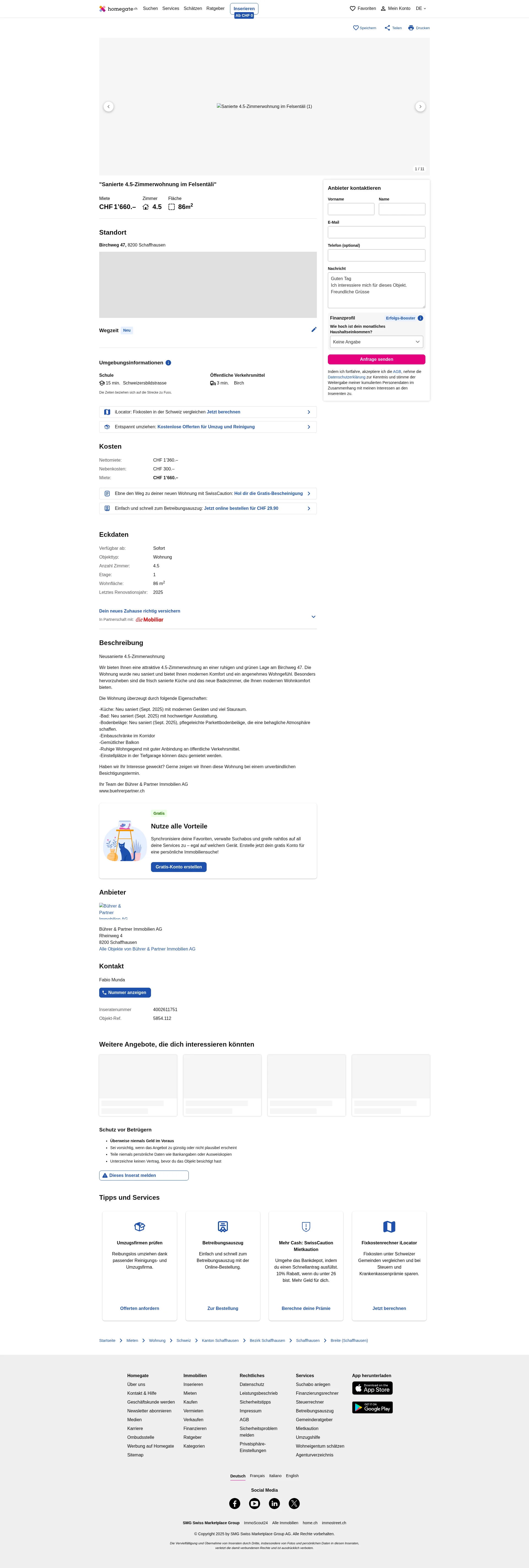 Wir bieten Ihnen eine attraktive 4.5-Zimmerwohnung an einer ruhigen und grünen Lage am Birchweg 47. Die Wohnung wurde neu saniert und bietet Ihnen modernen Komfort und ein angenehmes Wohngefühl. Besonders hervorzuheben sind die frisch sanierte Küche und das neue Badezimmer, die Ihnen modernen Wohnkomfort bieten.