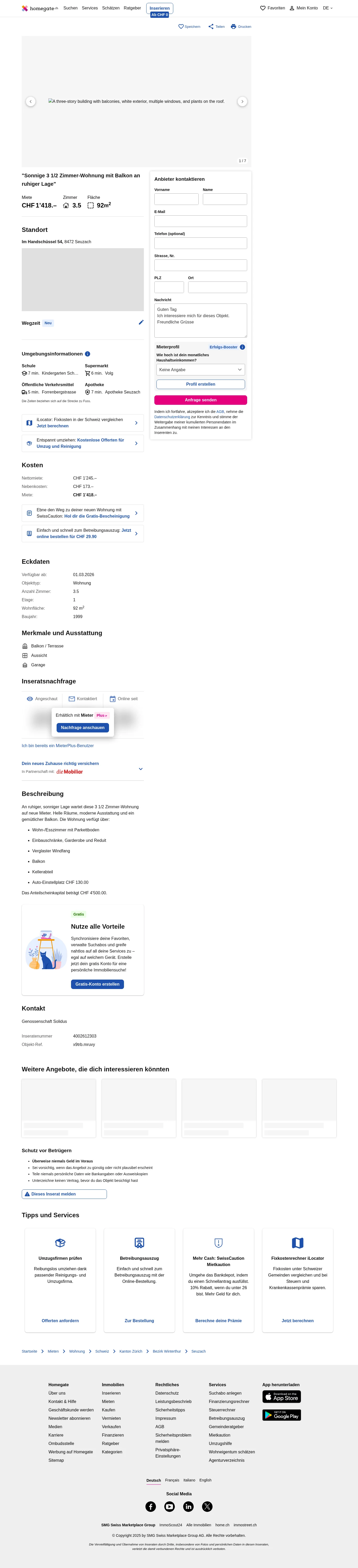 An ruhiger, sonniger Lage wartet diese 3 1/2 Zimmer-Wohnung auf neue Mieter. Helle Räume, moderne Ausstattung und ein gemütlicher Balkon. Die Wohnung verfügt über: