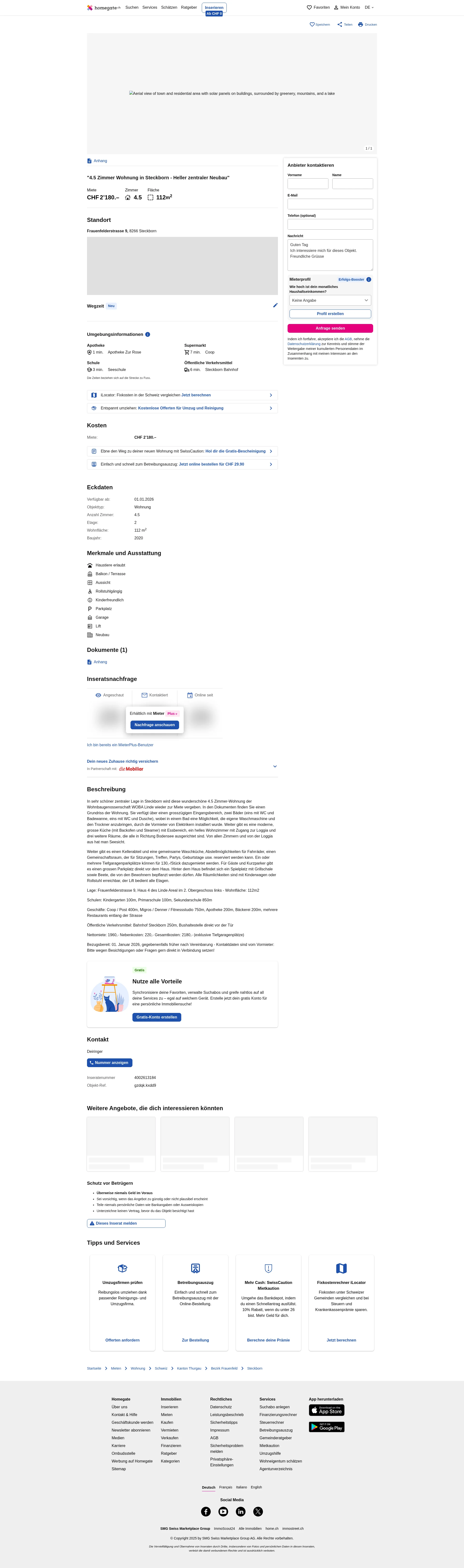 In sehr schöner zentraler Lage in Steckborn wird diese wunderschöne 4.5 Zimmer-Wohnung der Wohnbaugenossenschaft WOBA Linde wieder zur Miete vergeben. In den Dokumenten finden Sie einen Grundriss der Wohnung. Sie verfügt über einen grosszügigen Eingangsbereich, zwei Bäder (eins mit WC und Badewanne, eins mit WC und Dusche), wobei in einem Bad eine Möglichkeit, die eigene Waschmaschine und den Trockner anzubringen, durch die Vormieter von Elektrikern installiert wurde. Weiter gibt es eine moderne, grosse Küche (mit Backofen und Steamer) mit Essbereich, ein helles Wohnzimmer mit Zugang zur Loggia und drei weitere Räume, die alle in Richtung Bodensee ausgerichtet sind. Von allen Zimmern und von der Loggia aus hat man Seesicht.