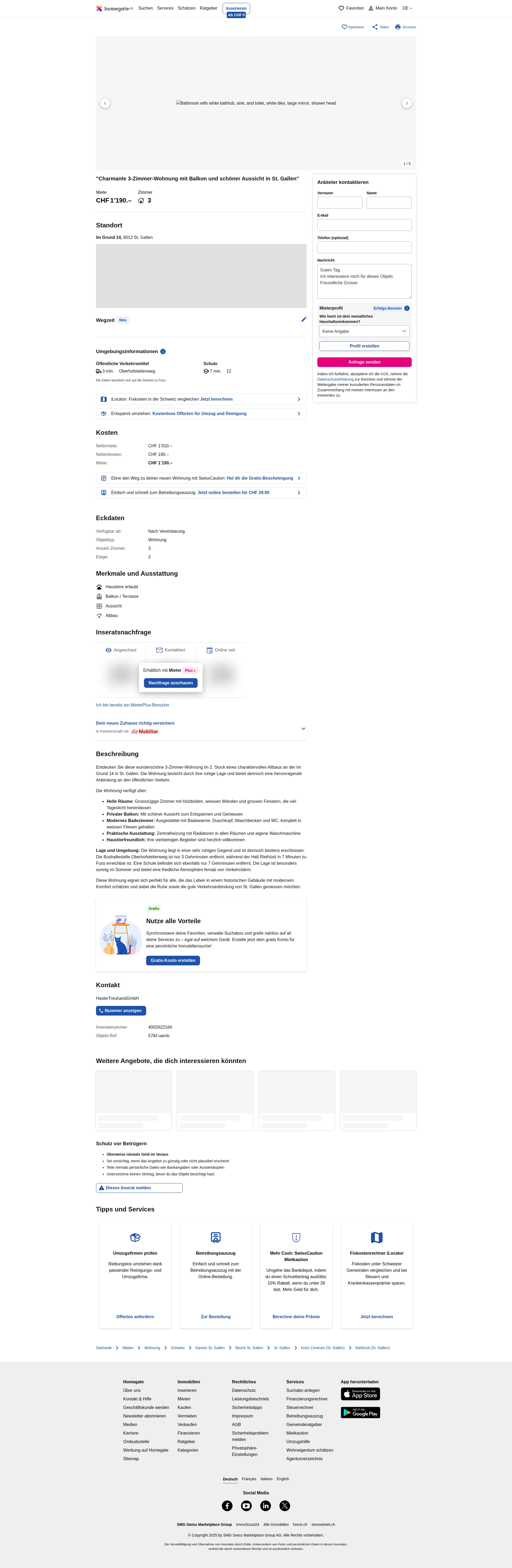 Diese Wohnung eignet sich perfekt fĂŒr alle, die das Leben in einem historischen GebĂ€ude mit modernem Komfort schĂ€tzen und dabei die Ruhe sowie die gute Verkehrsanbindung von St. Gallen geniessen möchten.