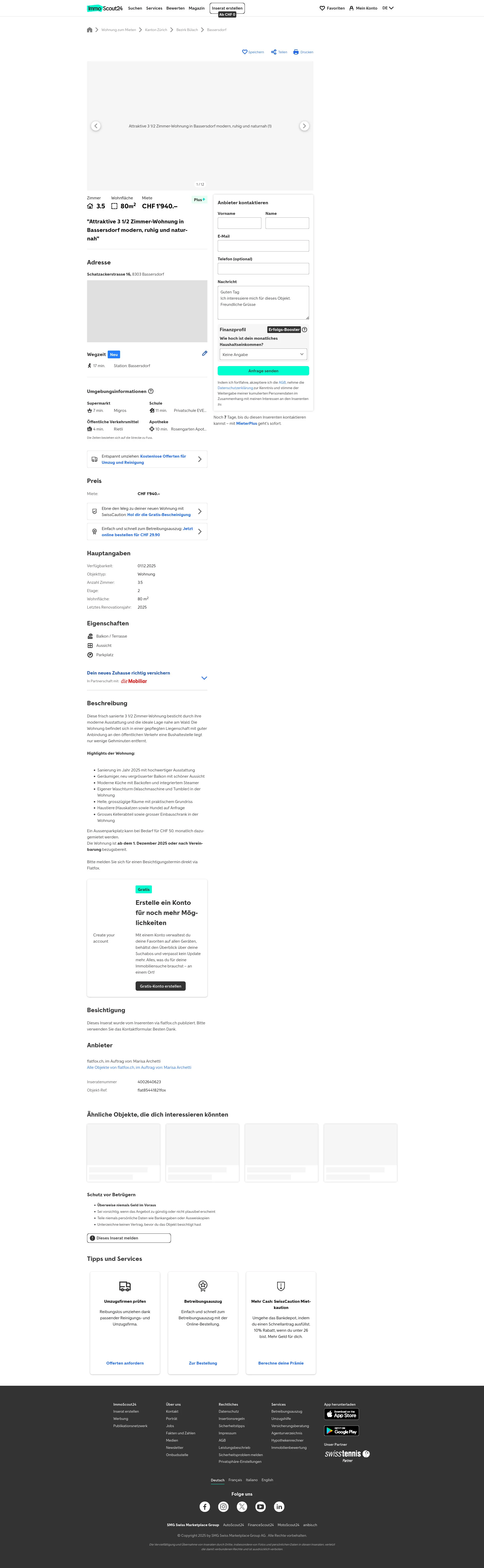 3.5 room cooperative apartment in Bassersdorf for 1940 CHF