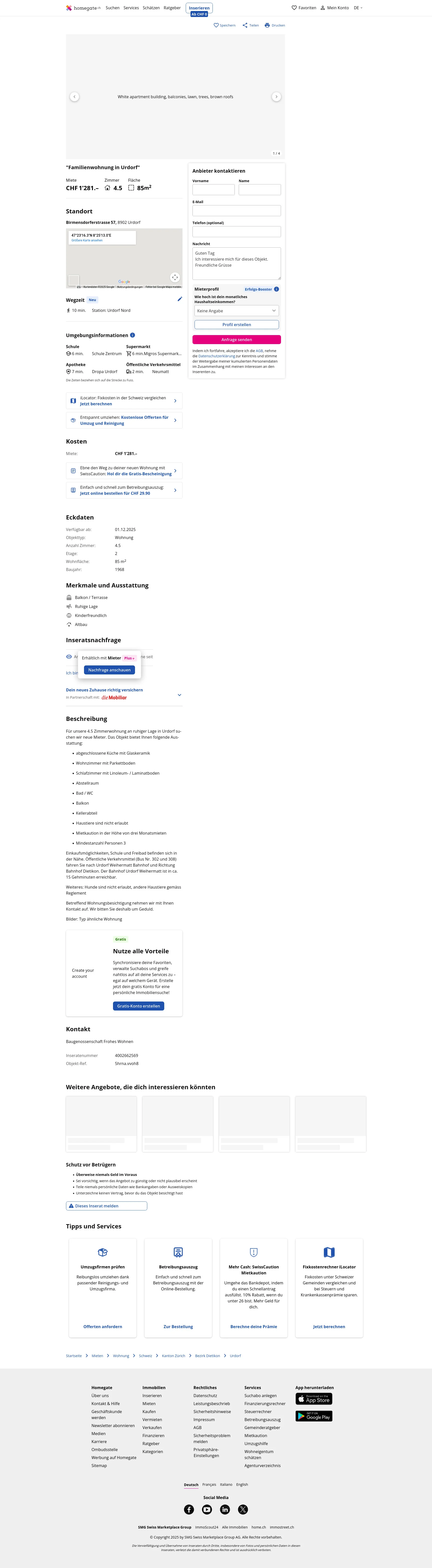 Für unsere 4.5 Zimmerwohnung an ruhiger Lage in Urdorf suchen wir neue Mieter. Das Objekt bietet Ihnen folgende Ausstattung:
